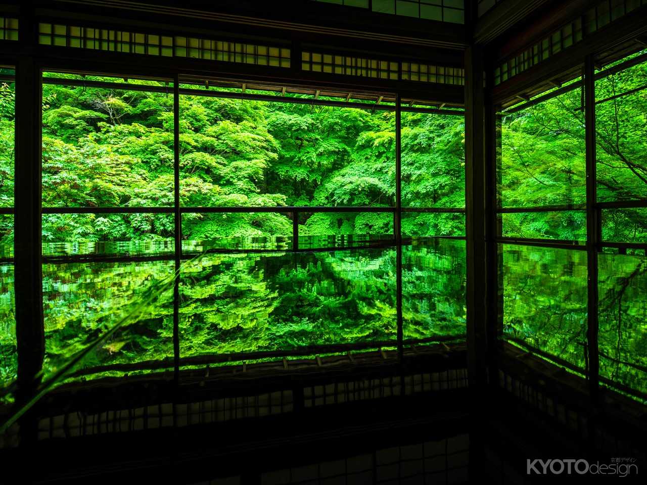 青いもみじが美しい比叡山の麓、八瀬にある寺院、瑠璃光院。