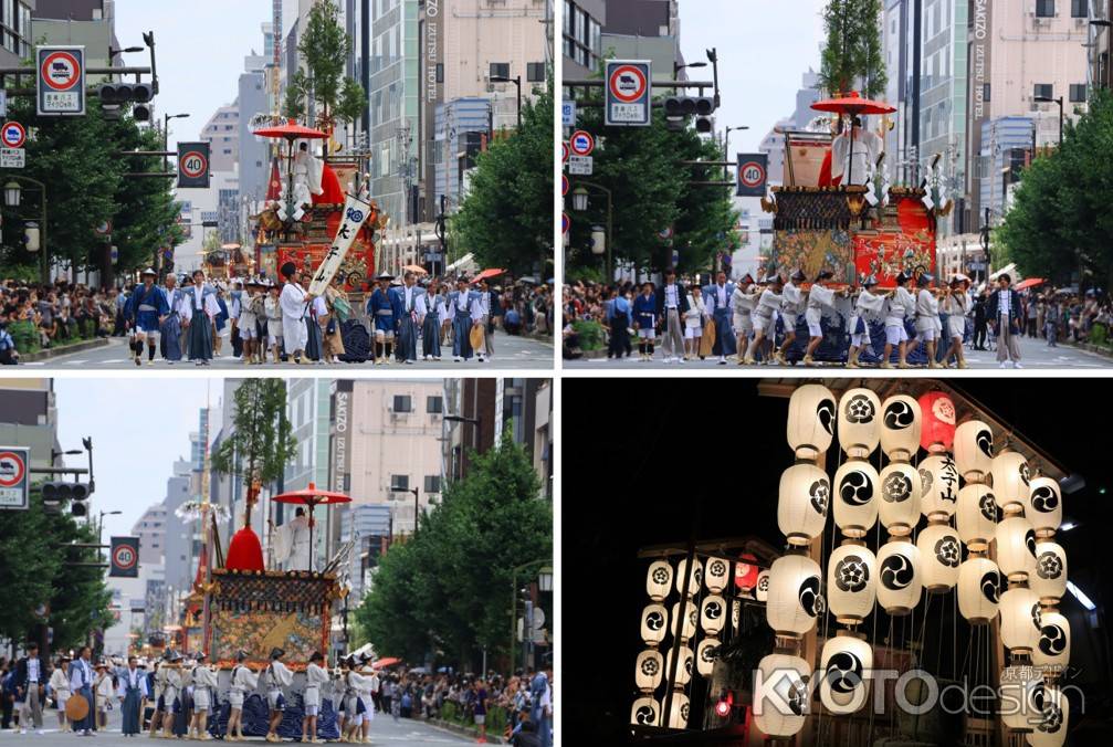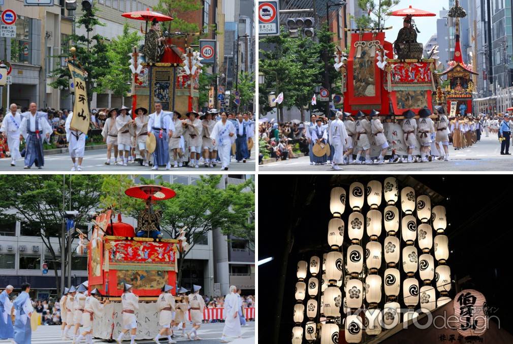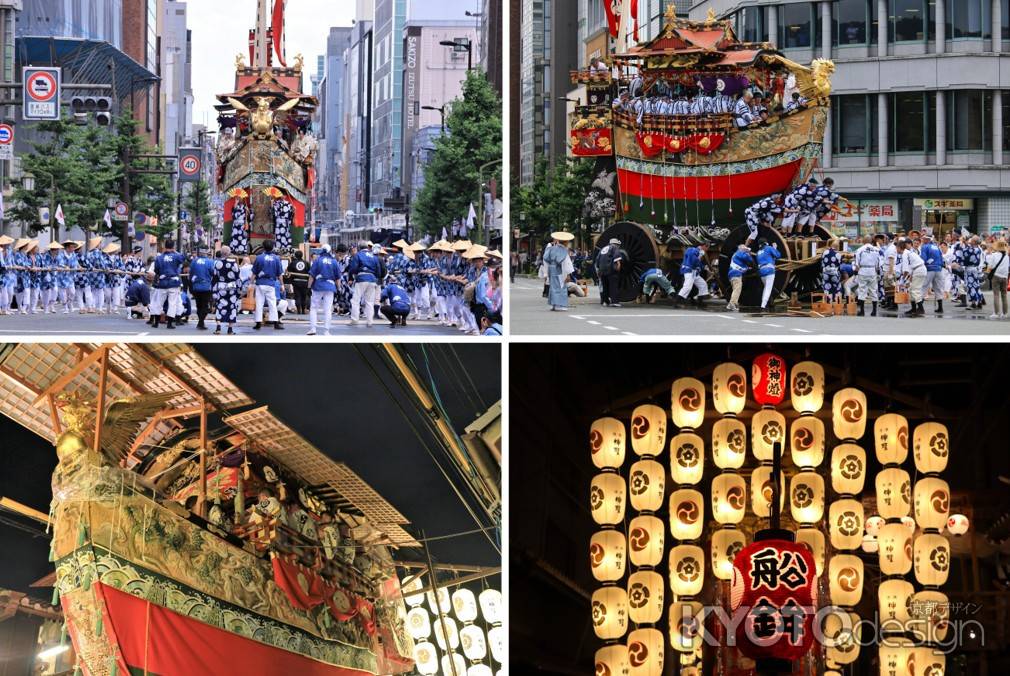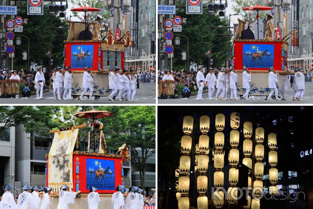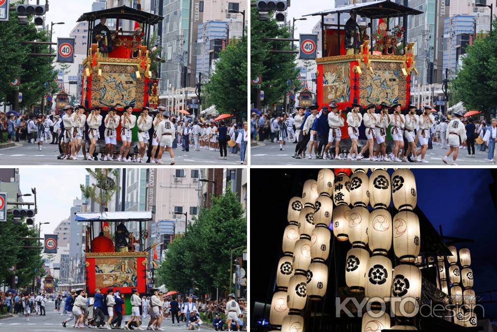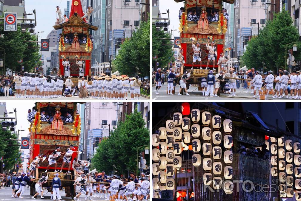 鉾頭に新月型(みかづき)を付けていることに由来。真木のなかほどに月読尊をまつっている。宵山、駒形提灯の「月」の字がいい。厄除、疫病除。