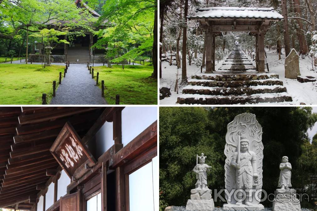 大原三千院の往生極楽院内陣に安置されている阿弥陀三尊像(阿弥陀如来、観世音菩薩、勢至菩薩)はそれぞれ国宝に指定されています。京北の常照皇寺にも阿弥陀三尊像が安置され需要文化財に指定されています。大原野の正法寺には石像の阿弥陀三尊像があります。また、知恩院の勢至堂は勢至菩薩様をご本尊としてお祀りしていますが、現在勢至堂修理工事中のため令和12年まで入ることはできません。他にもいくつかの寺院に安置されています。