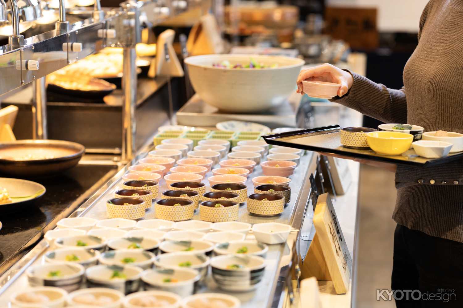 旬の食材や地産地消の食材を使った京会席をブッフェ形式で楽しめる朝食「京会席ブッフェ」は特に好評を博しています。
