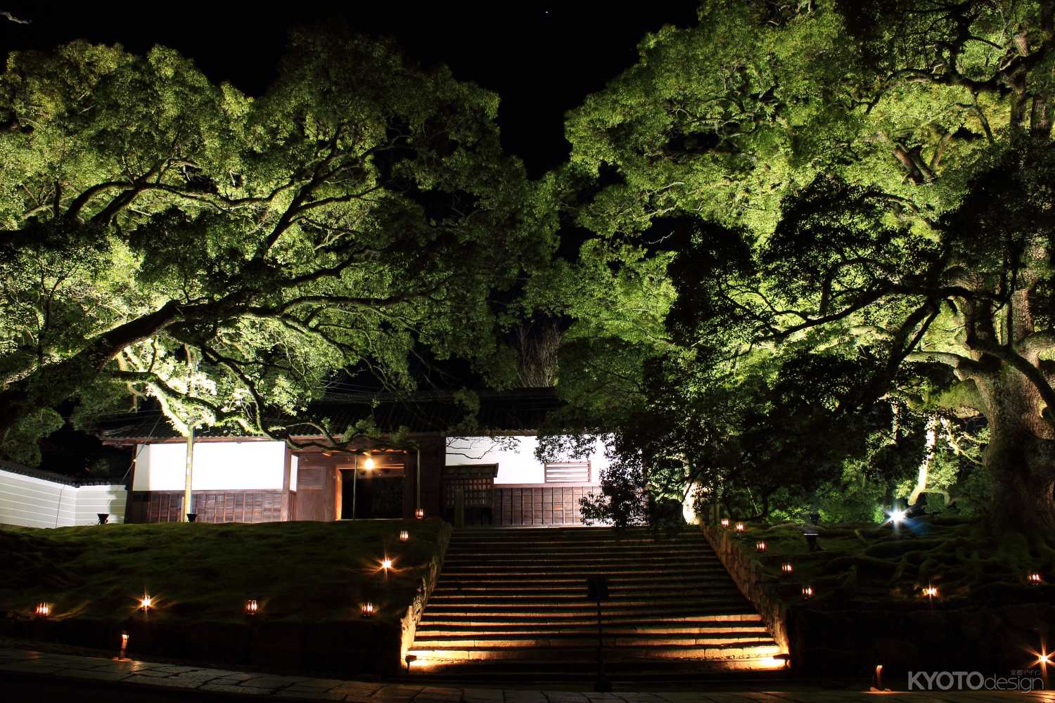 東山の華頂山から山内全体まで広範囲で紅葉を観賞でき、特に国宝「三門」の周辺や友禅苑の池の周りは見事です。御廟などに通じる長い石段では、広大な境内を見下ろしながら紅葉をめでることができます。鴬張りの廊下、白木の棺、忘れ傘、抜け雀、三方正面真向の猫、大杓子、瓜生石が、知恩院の七不思議として伝わります。