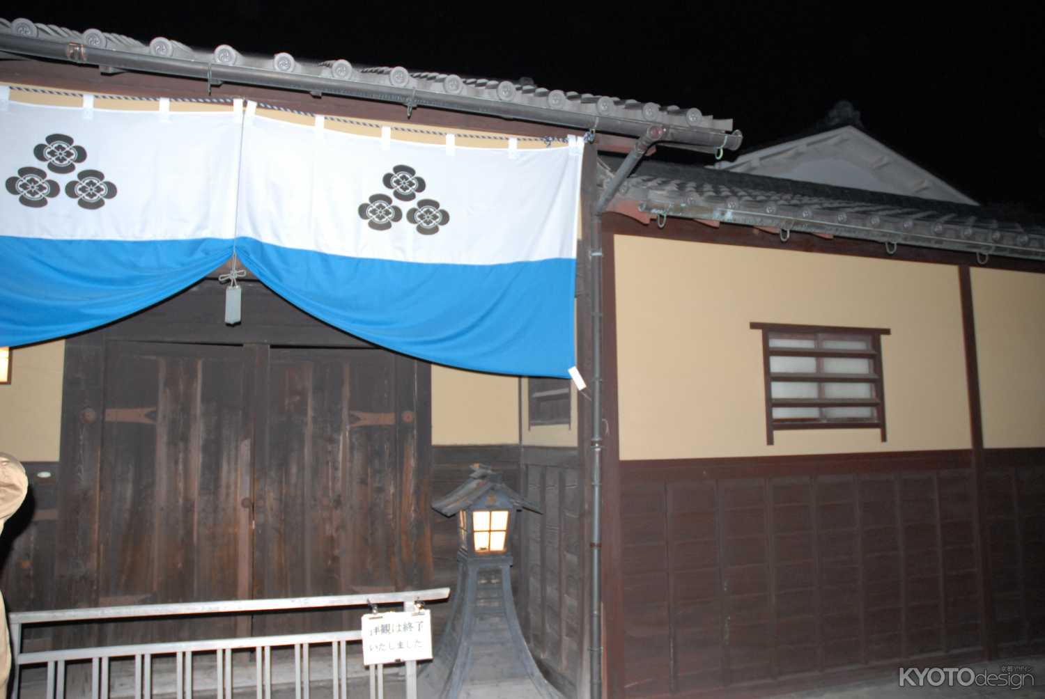 壬生屯所から近かったこともあり、ここ角屋でたびたび宴会を開かれていました。新撰組は、玄関の刀掛けに刀を置かず部屋に持ち込んでいたそうで、緞子の間など3カ所に新撰組による刀傷が残っています。また、1863年、新選組初代局長・芹沢鴨と新選組は、この角屋の「松の間」で酒宴を催し、その後、帰宅した壬生の屯所「八木邸」で芹沢鴨は寝込みを襲われて殺害されます。松の間での宴会が最後の晩餐だといわれています。