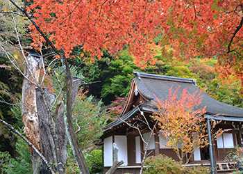京都の洛北の地に広がる、大原。三千院などが位置する山間部の大原は、市街地に比べ、比較的紅葉が早く始まります。京都の中心部から少し離れているので、ゆっくりとした静かなひとときを過ごすことができるでしょう。まずは、ここから雅やかな京の紅葉をご紹介します。