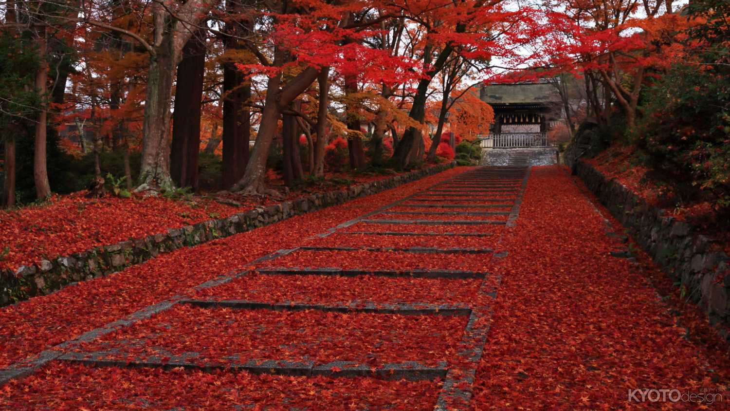 特に勅使門へ続く石畳の階段付近の散り紅葉も有名で、晩秋まで楽しむことができます。