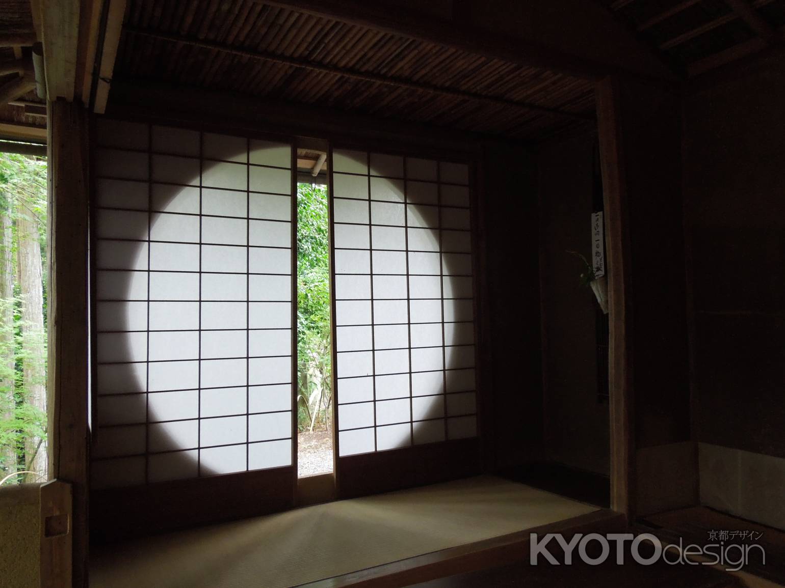 仏教では完全な円は完成した悟りの姿を示すといわれていますが、この「吉野窓」は窓の下部が切れて直線となっています。