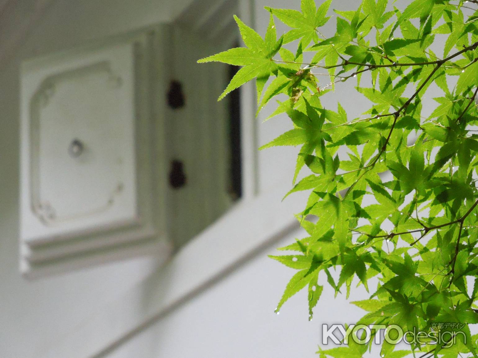 白壁と青モミジ