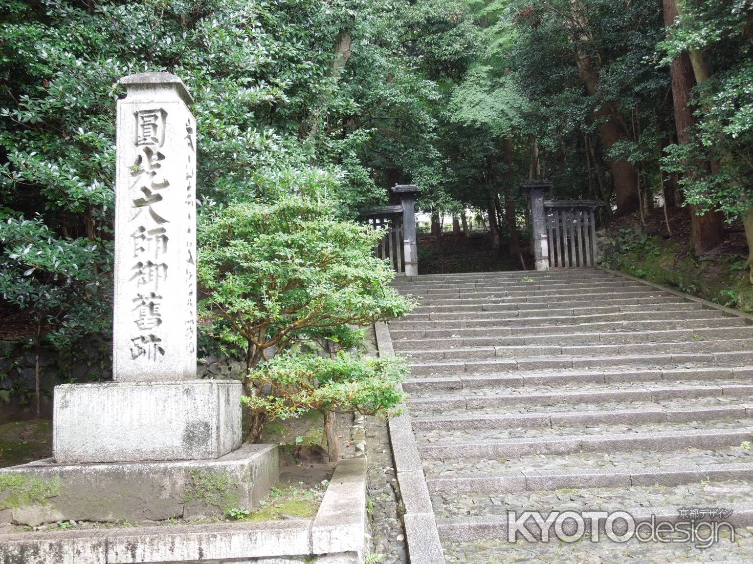 JR京都駅からは市バス5系統に乗って「浄土寺」で降りると東に歩いて約10分、哲学の道より一本山際(東側)の通称「隠れ道」という道に面して石段が見えます。