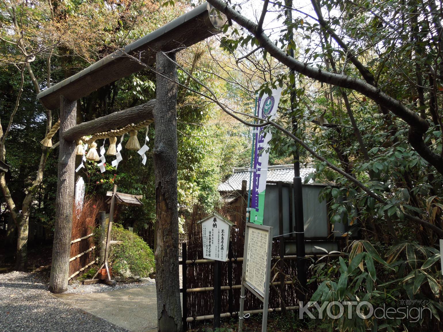 京の街ではほとんど見ることのない野宮神社の黒木の鳥居は、すべての鳥居の基本形といわれる最も古い形の鳥居で、森から伐り出したままの木材(皮付きのままの丸太)で組まれています。