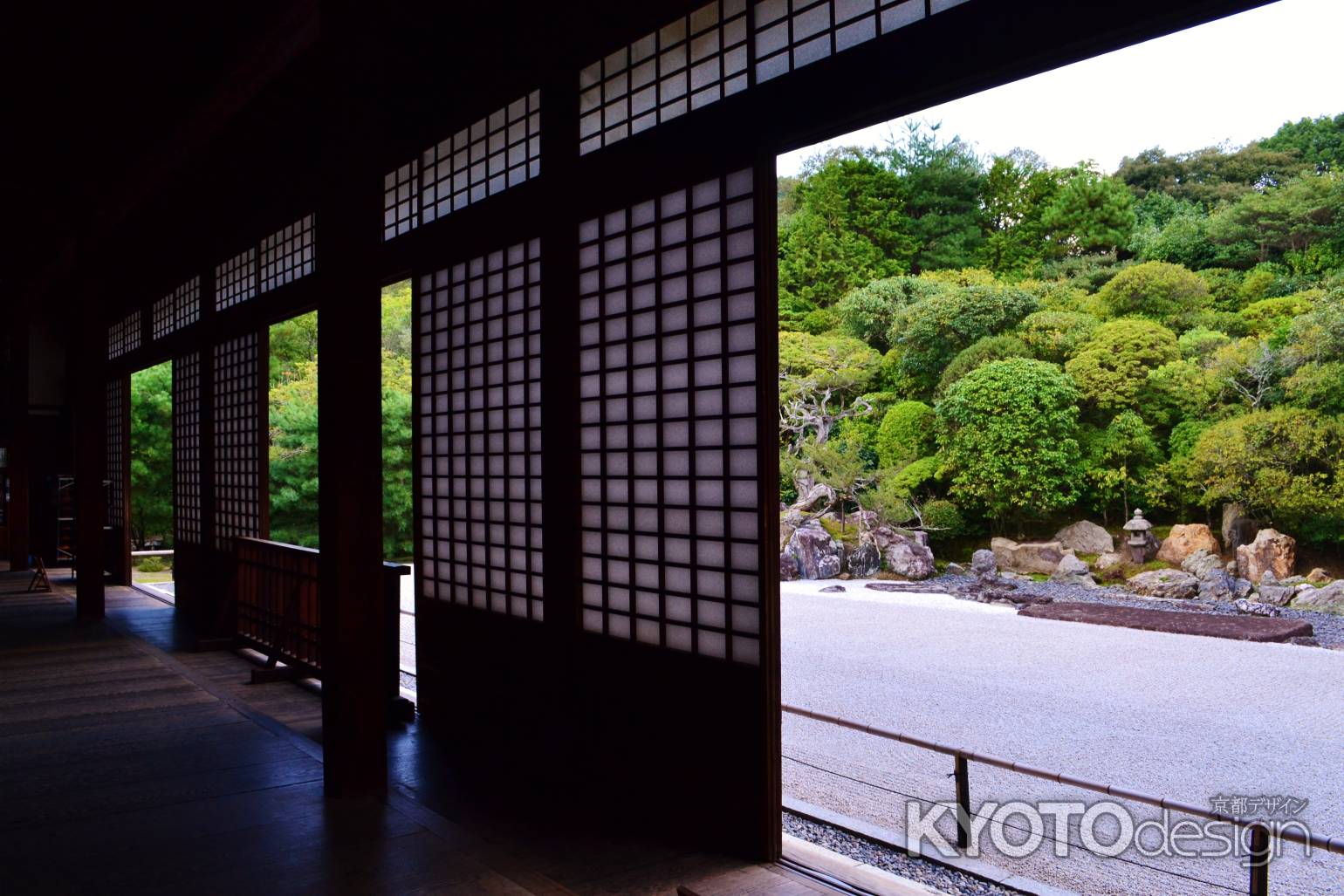 小堀遠州による枯山水の庭園は名勝、茶室・八窓席は京都三名席の一つに指定されています。