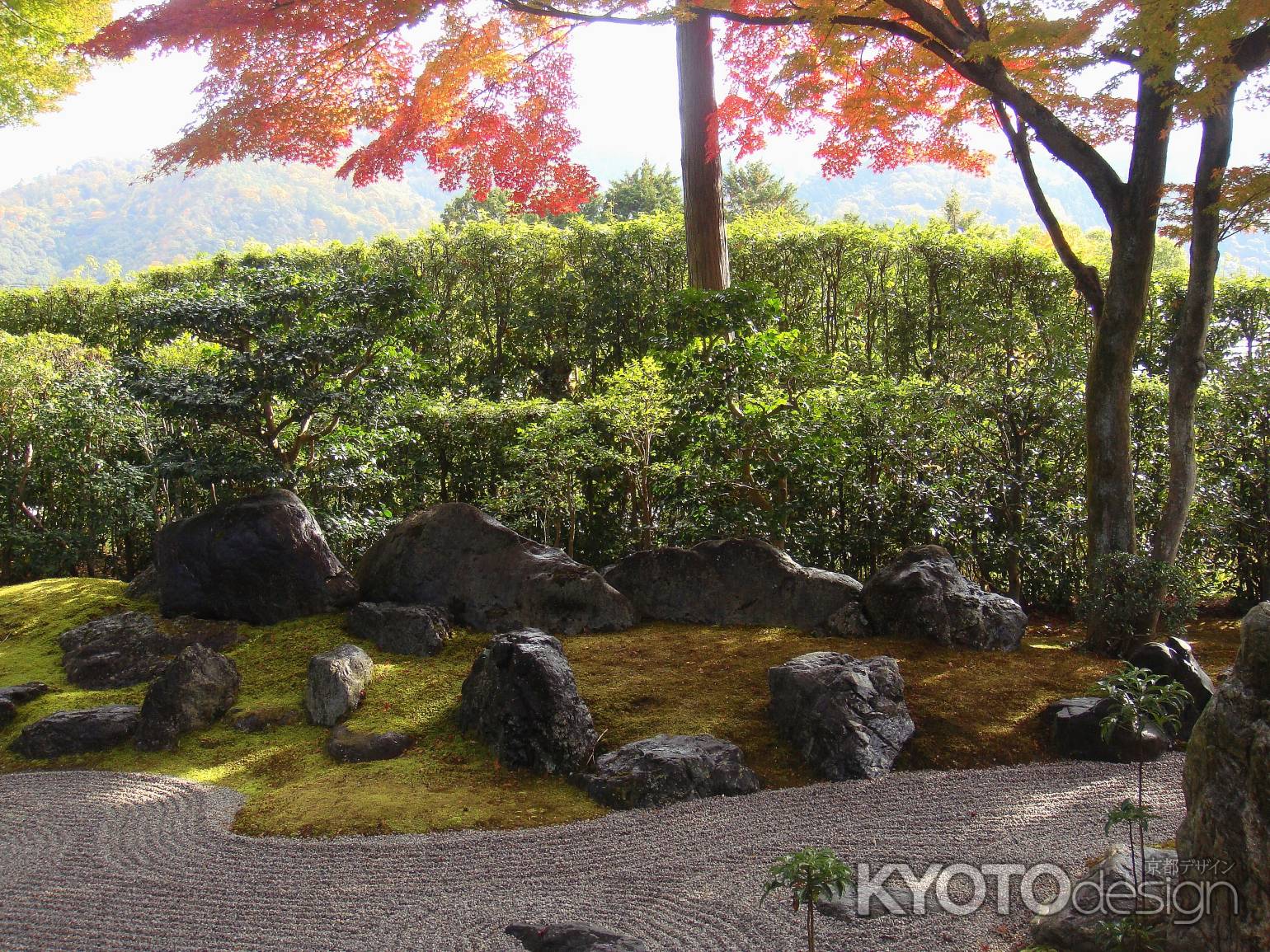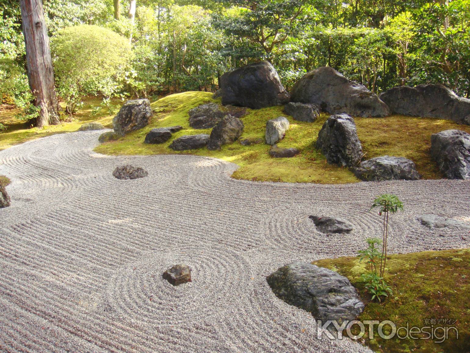 その回りを弟子や生き物たちが悲しむ様子が石組や白砂、植栽によって表現されています。
