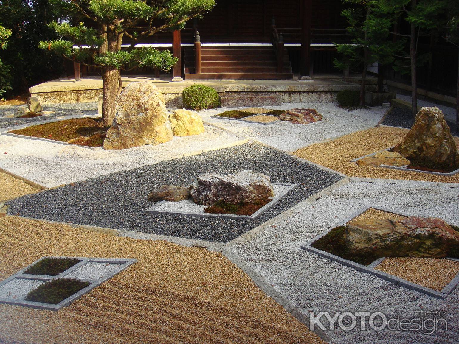 市松模様が美しく、開放感のある枯山水の庭園です。