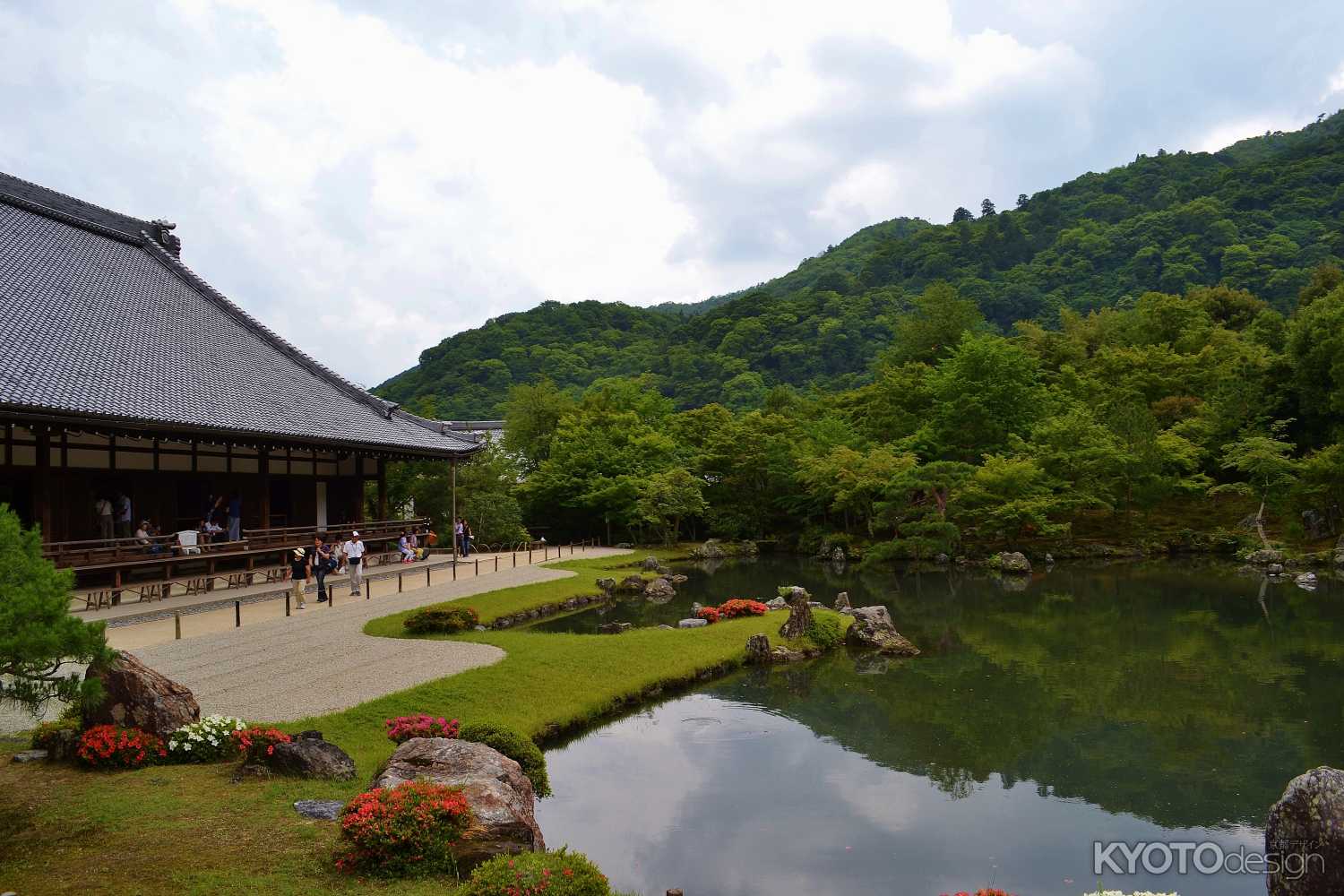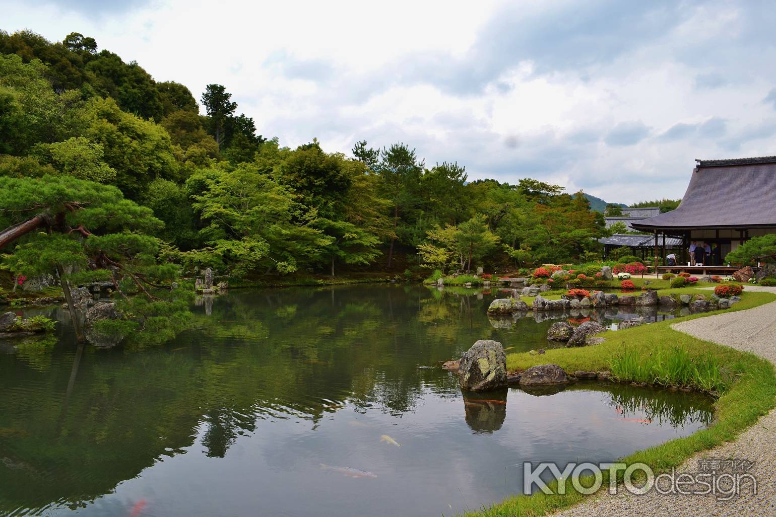 庭園は回遊式になっており、東山・嵐山・保津峡を借景とした景色が見所。