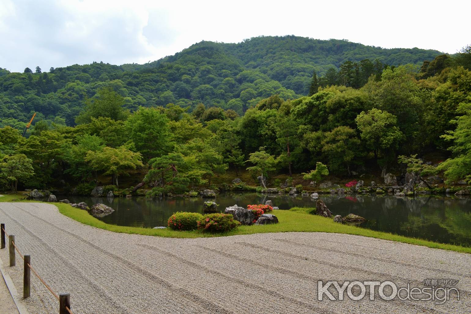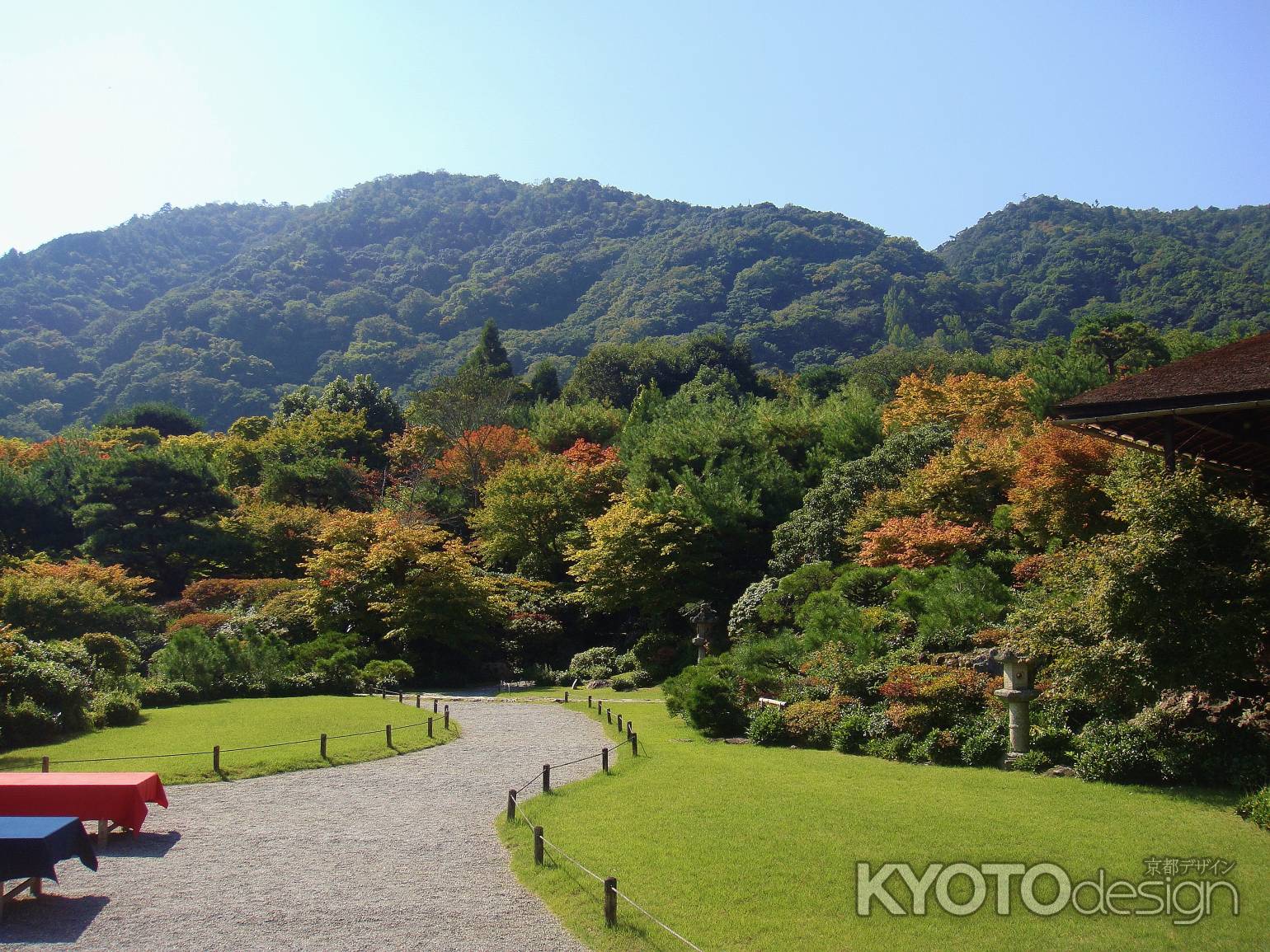 嵐山や亀山を借景に取り入れた借景式の庭園でもあります。