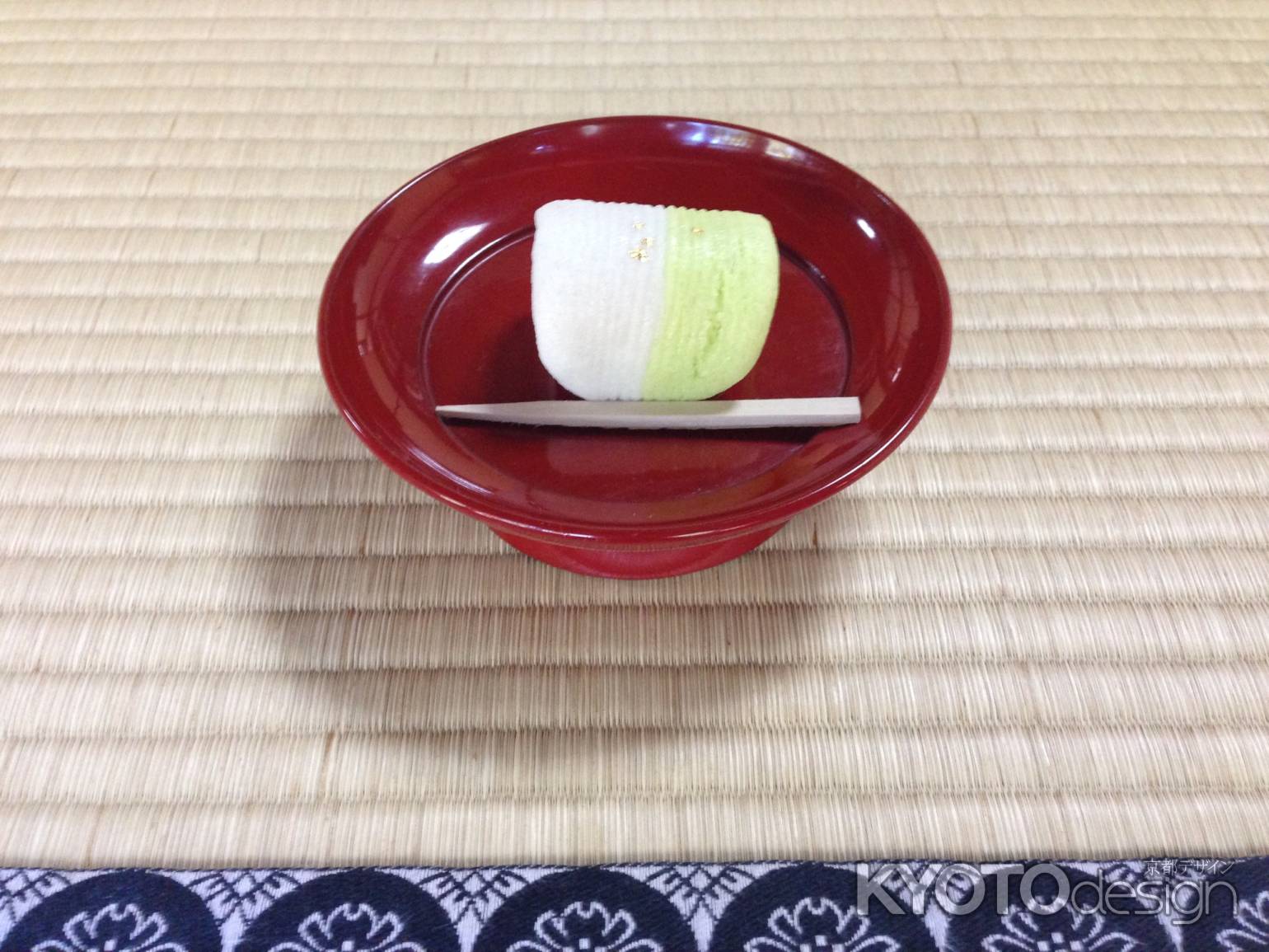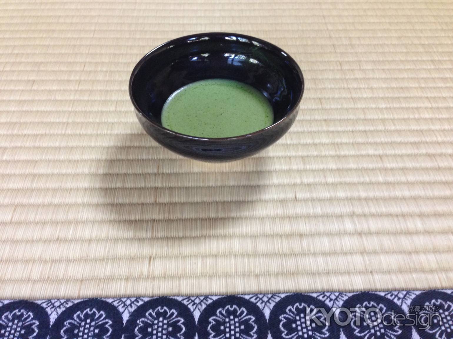 展示期間中、一日50席限定の特別呈茶があります。この展示のために特別に作られたという、お菓子「風雷」。そして実際の四頭茶会で使用される湯滴天目茶碗。朝顔形の漆黒にかすかに星がきらきら光るようにも見え、少しぶ厚い手触りも印象的でした。