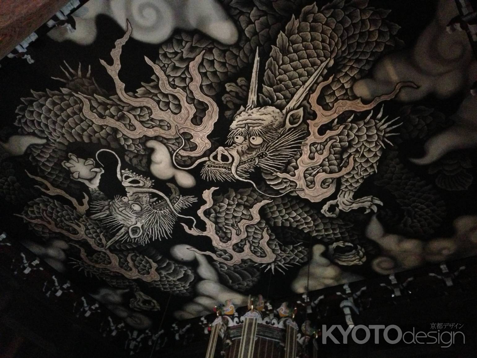 かの有名な宗達「風神雷神図」、法堂の天井画「双龍図」、そして茶室「東陽坊」も。