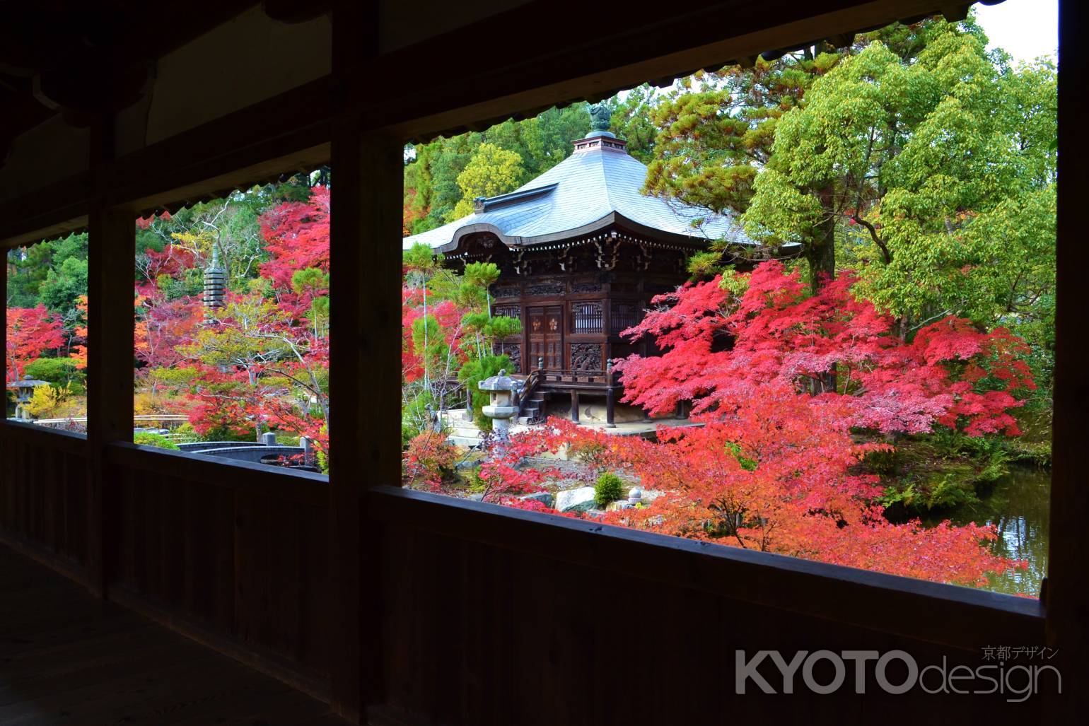 紅葉につつまれた弁天堂 清凉寺