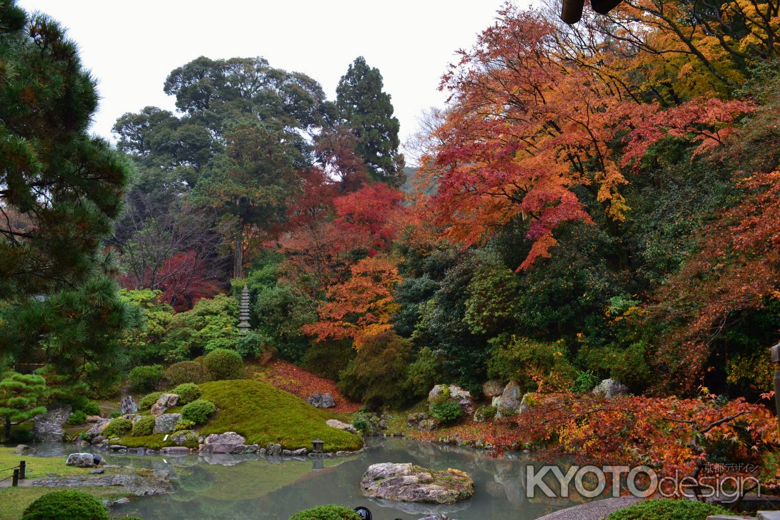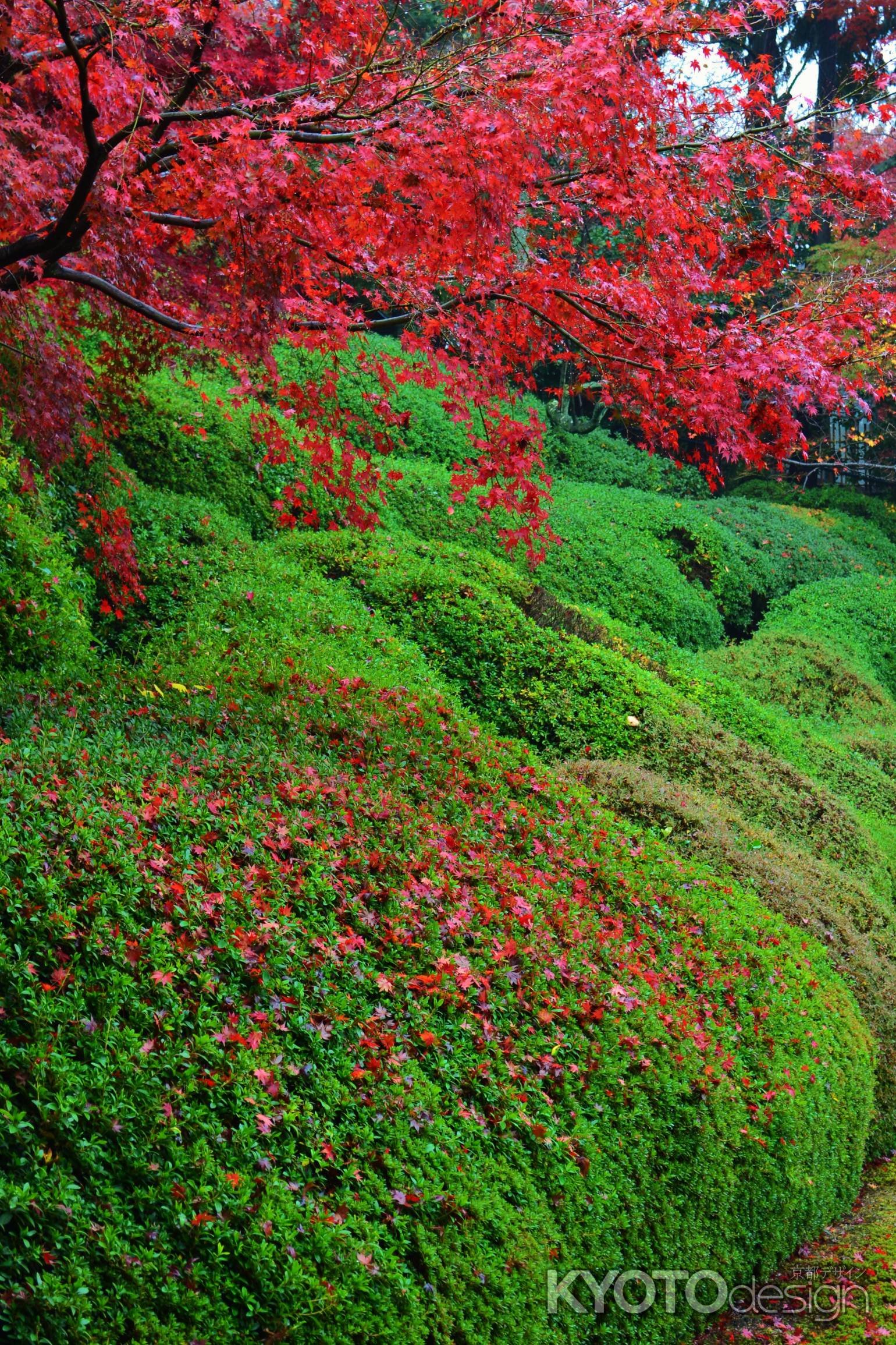 回遊式の庭を巡るといたるところに見事な敷き紅葉が…。