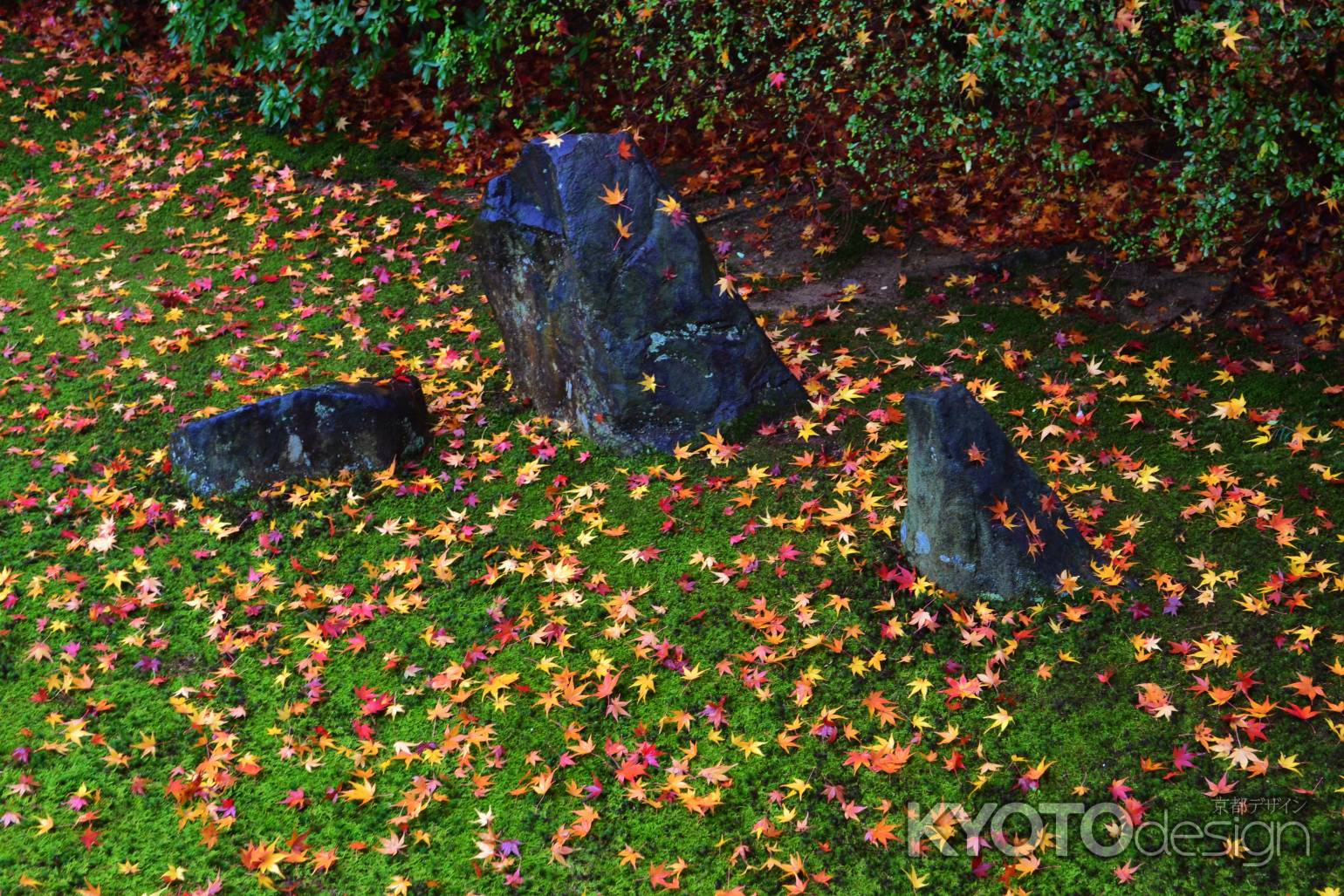 苔の上に落ちたいろとりどりの楓も鮮やかです。