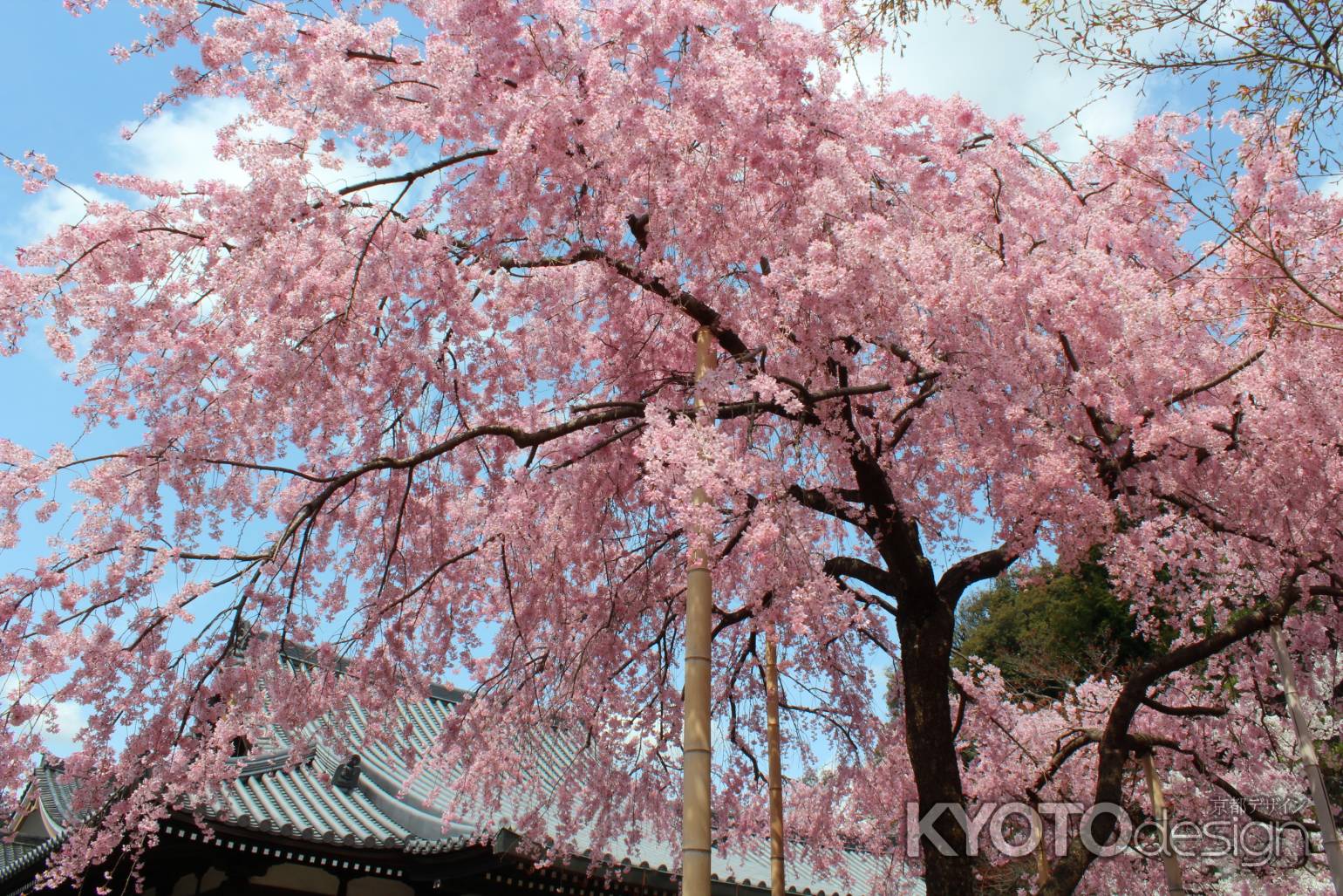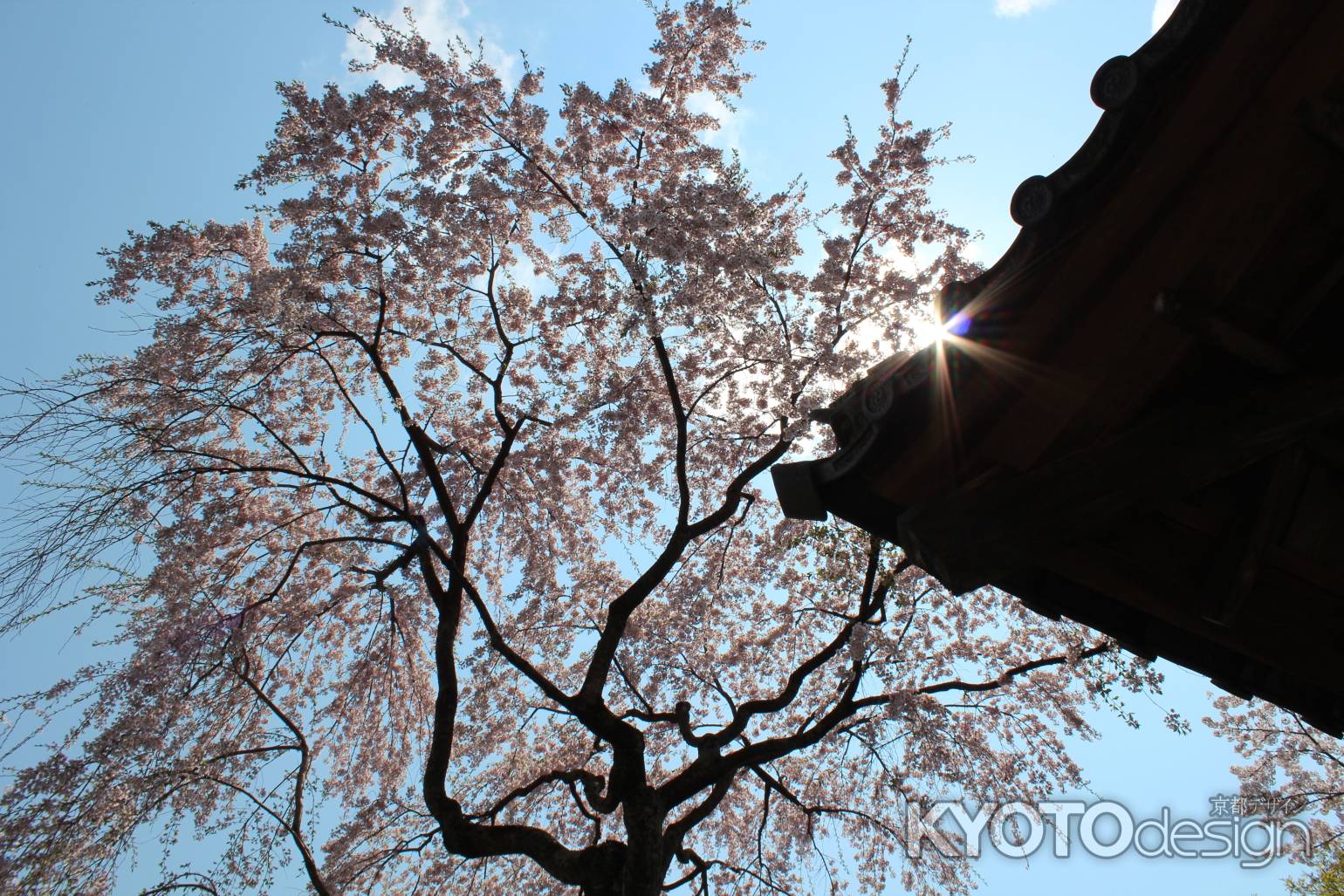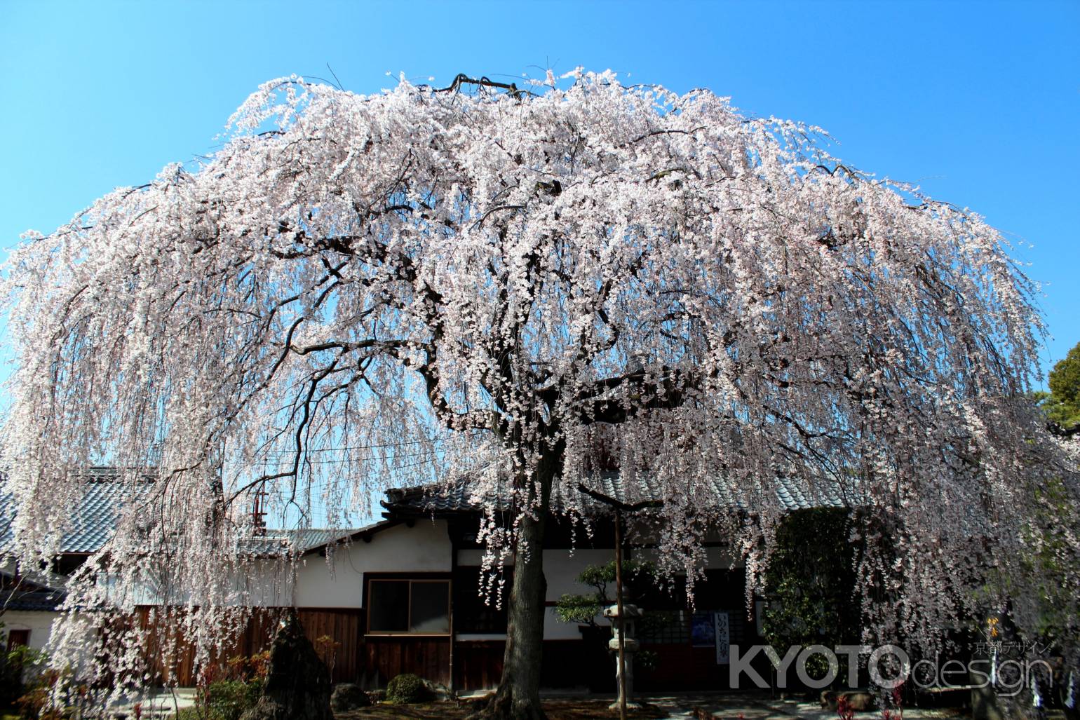 出町、本満寺の枝垂れ桜。この枝垂れ桜は円山公園の枝垂れ桜の姉妹樹ですが、樹勢が