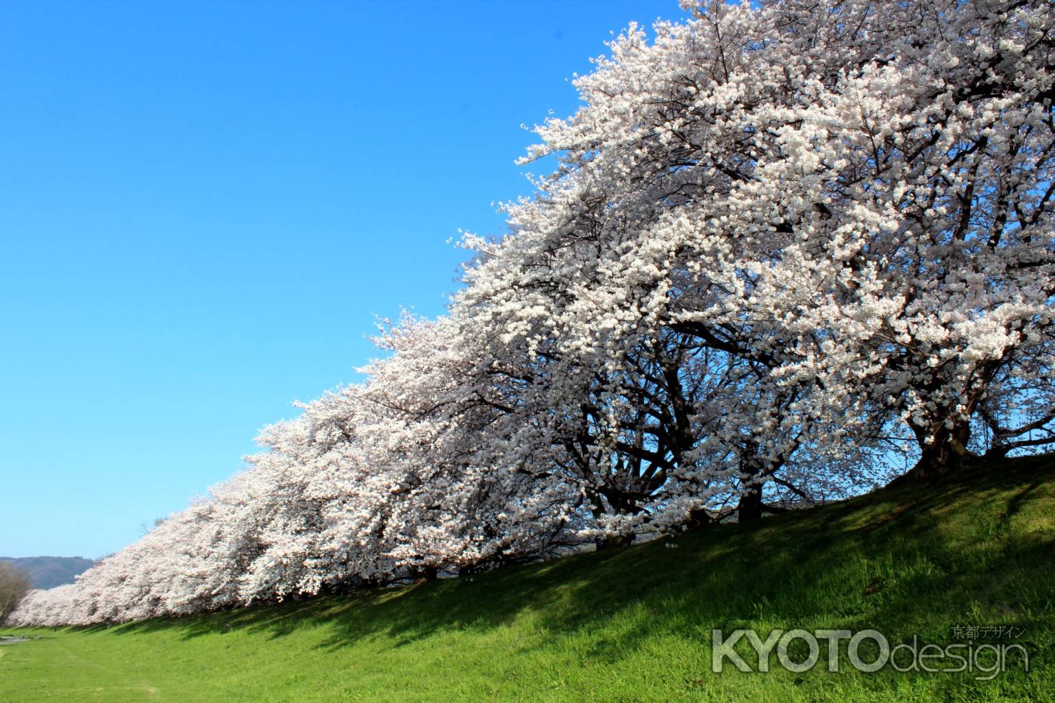 八幡市にある三川合流手前の桜並木。桂川、宇治川、木津川の三つの川が合流して淀川に