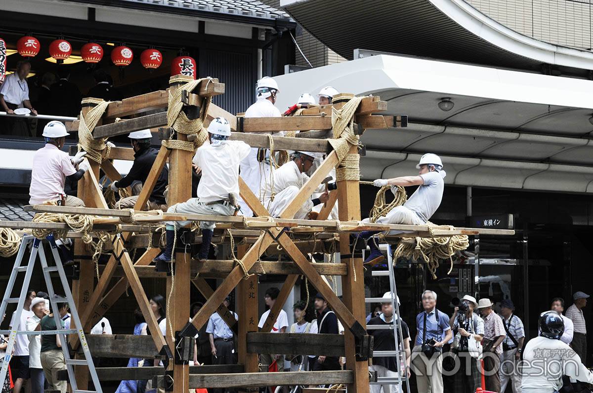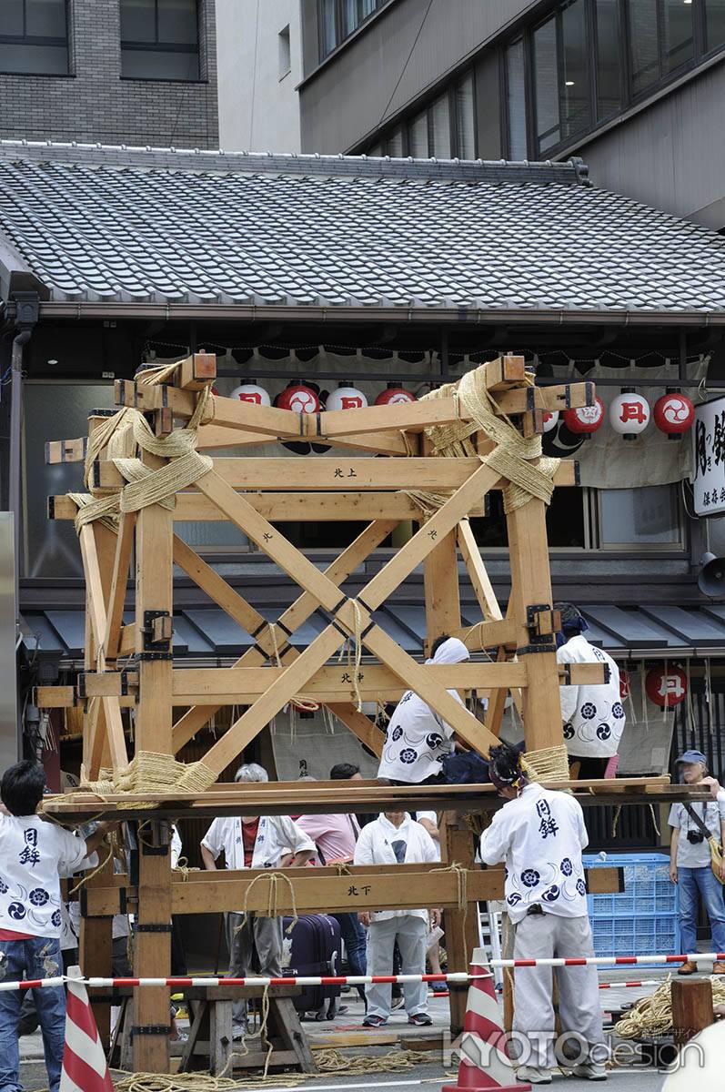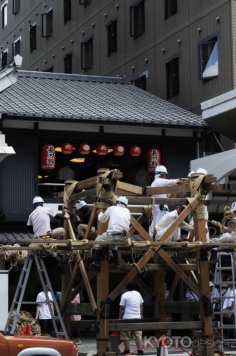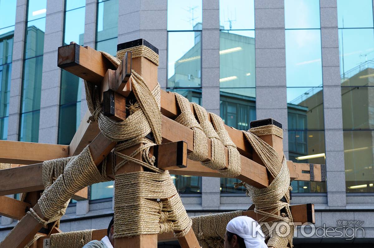 四条室町を北に行ったところにある鉾です。道が狭いせいか鉾立がはじまる時間も夕方。土台が組まれるのは夜でしょうか。