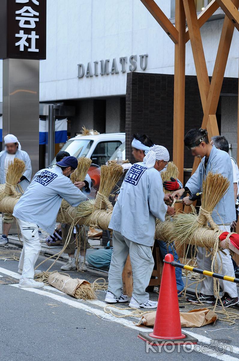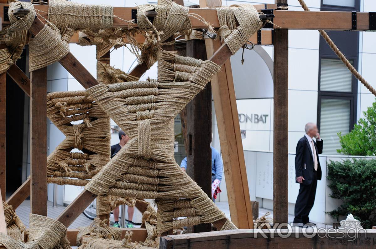 京都はまだまだ梅雨ですが、天候にも恵まれ長刀鉾、函谷鉾、月鉾、鶏鉾、菊水鉾の5基の鉾建てがはじまりました。あれだけ大きな鉾を釘を使わず縄だけで美しく組み立てる職人技には毎年感心します。