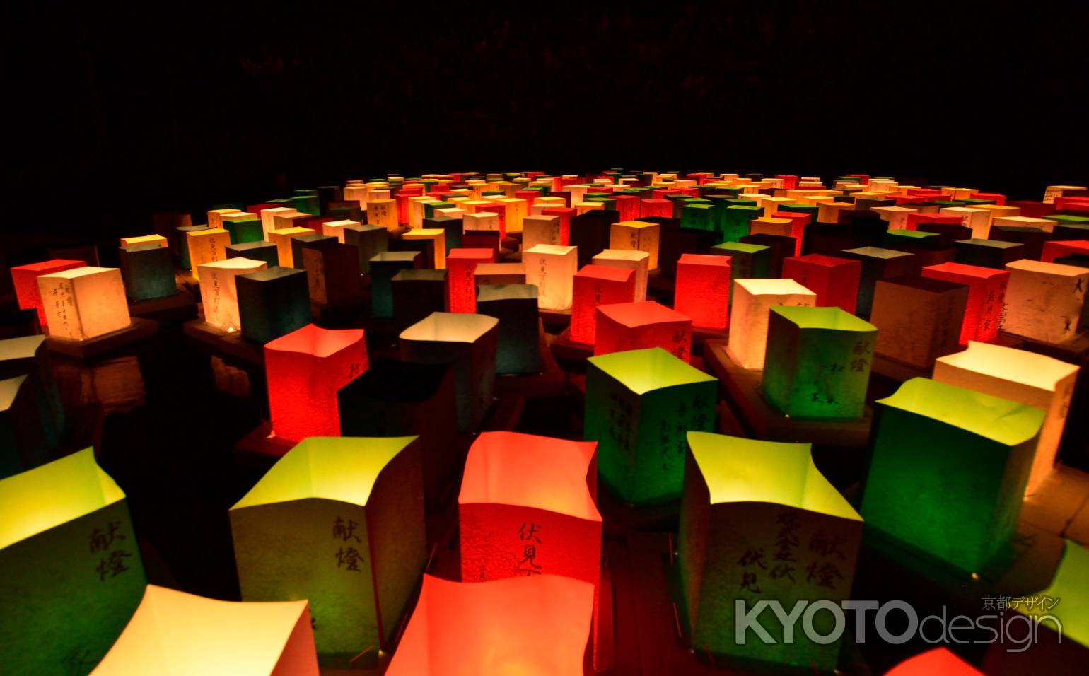 毎年8月の第2土曜日に催される伏見万灯流し。寺田屋浜から、お盆の先祖供養や家内安全など思い思いの祈りを込めて流される万灯が