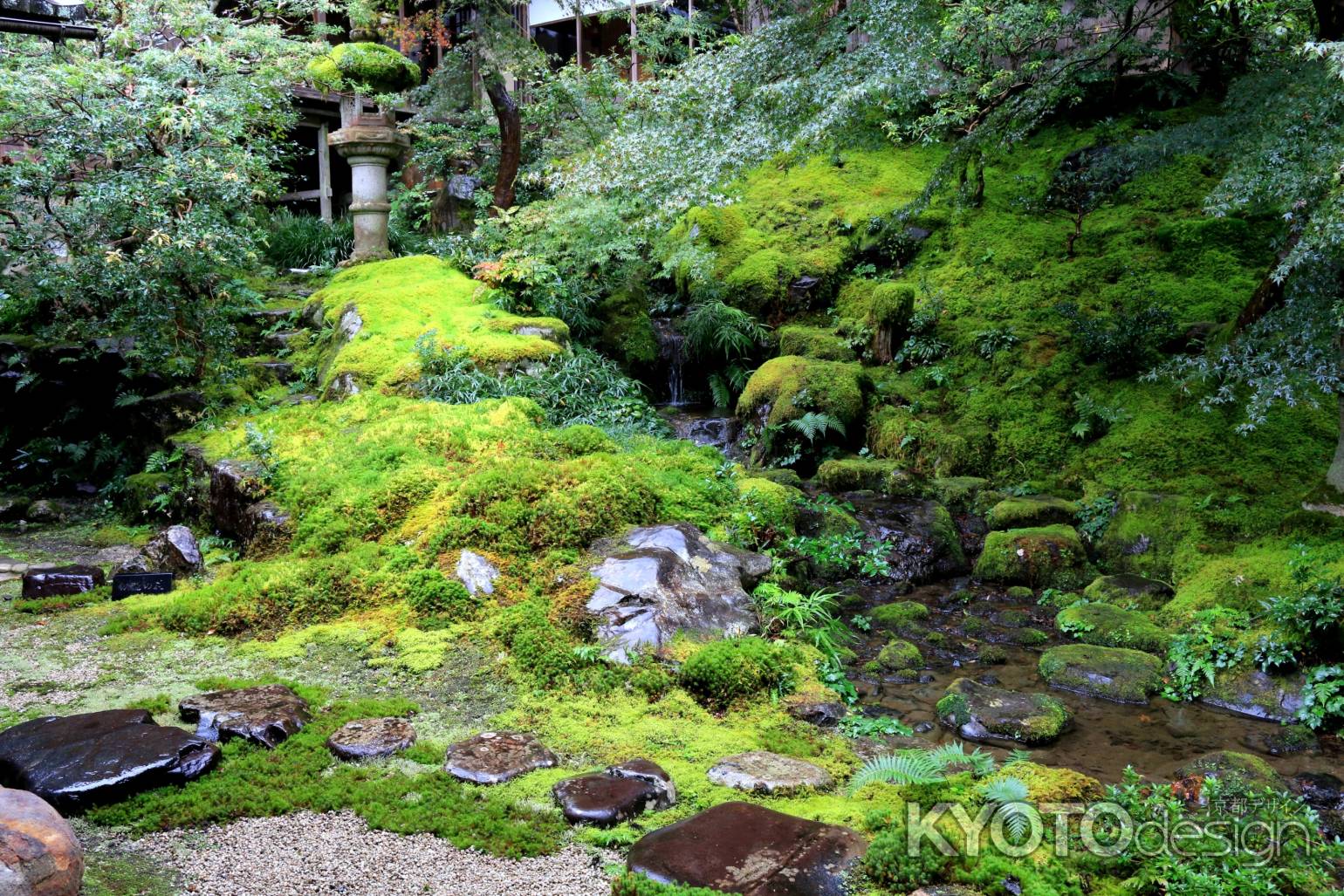 山門を入ってからの「山露路の庭」、書院から眺める「瑠璃の庭」、茶室から広がる「臥龍の庭」など、みどこ