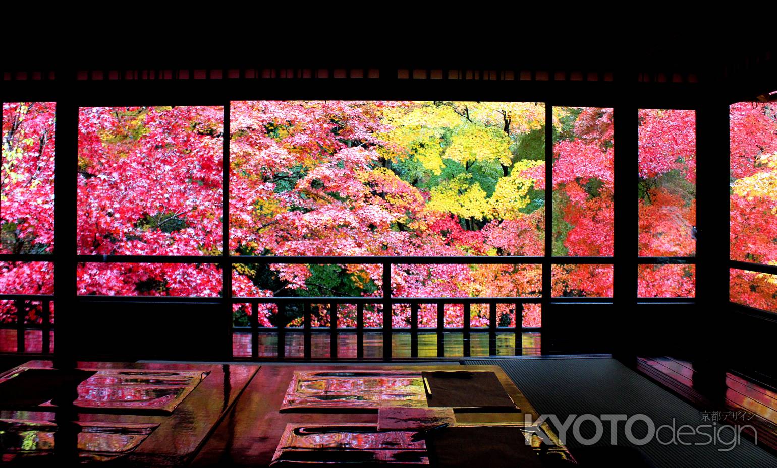 玄関からすぐ2階に上がって目の前に広がるのが「瑠璃の庭」です。すぐ目の前に、もみじの葉があふれます。