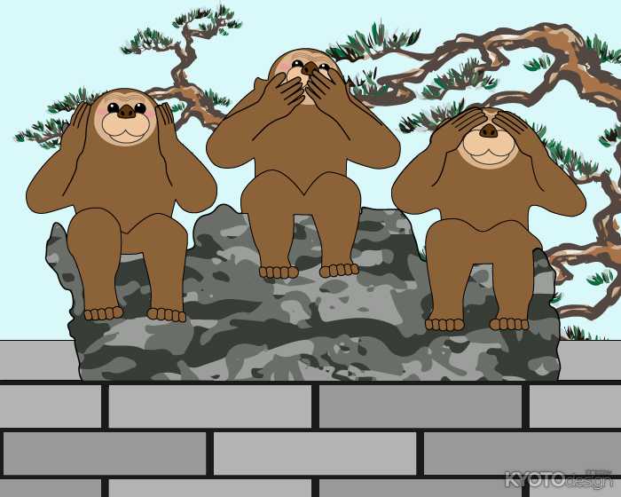 新日吉神宮の本殿脇には、猿の姿をした神様のお使いの「狛猿」がいます。「魔が去る」「何よりも勝る」の語呂合わせから、災厄を退けて幸福を授けてくれるそうです。狛猿は、神猿が夜な夜な動き出すのを防ぐために、狛猿は金網の中に入れられています。