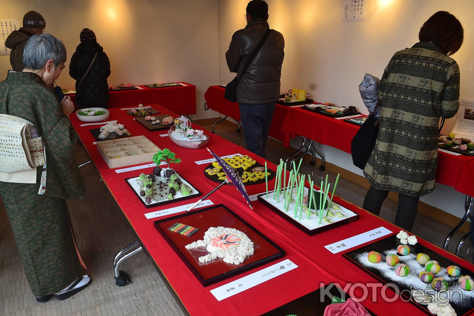 京都の和菓子職人の先生方と和菓子教室の生徒の方の作品が展示されていました。