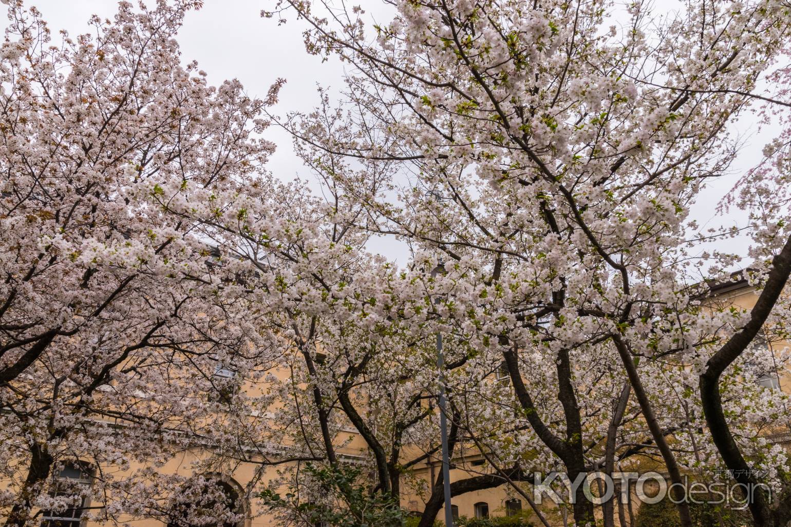 様々な種類の桜が混在しているだけに、花に寄ってみても、白とピンクの双方のグラデーションが入り混じり、京都府庁旧本館ならではの花景色を見せてくれます。さながら紅白桜合戦ですが、どちらか一方を選ぶのは無理かも・・・・。