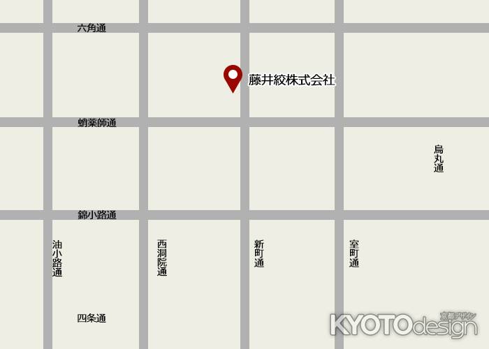藤井絞さんは新町通と蛸薬師通の交差点を北に少し行ったところにあります。