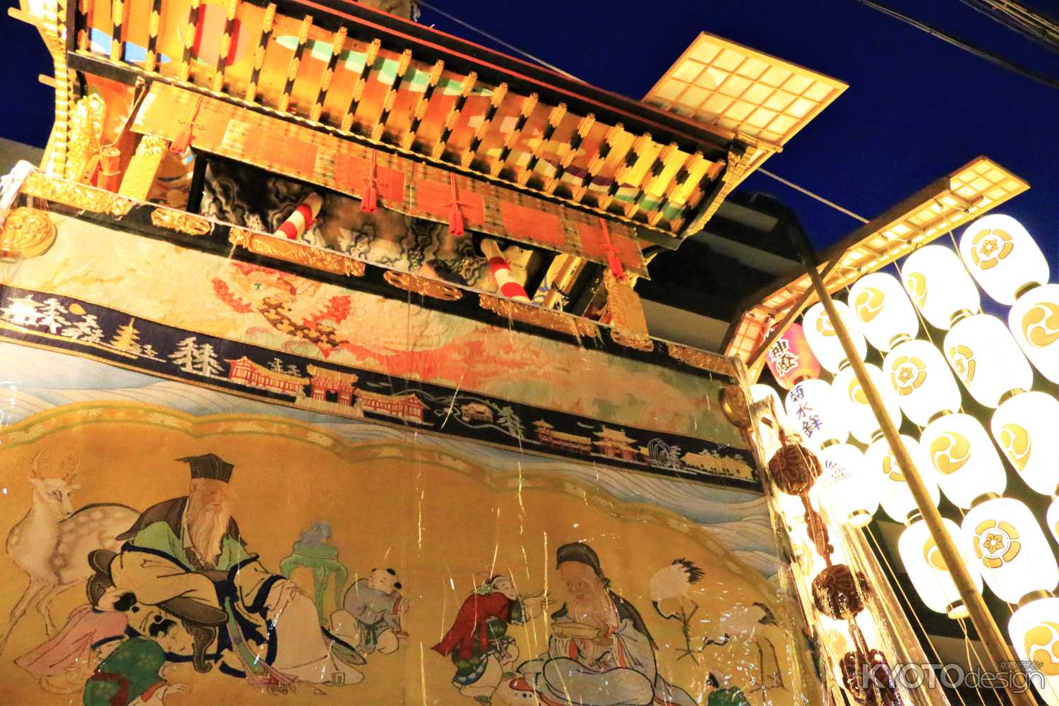 宵山には、すべての山鉾に、駒形提灯がつるされ、ほのかに浮かび上がる提灯のあかりが、宵山の気分を盛り上げてくれます。
