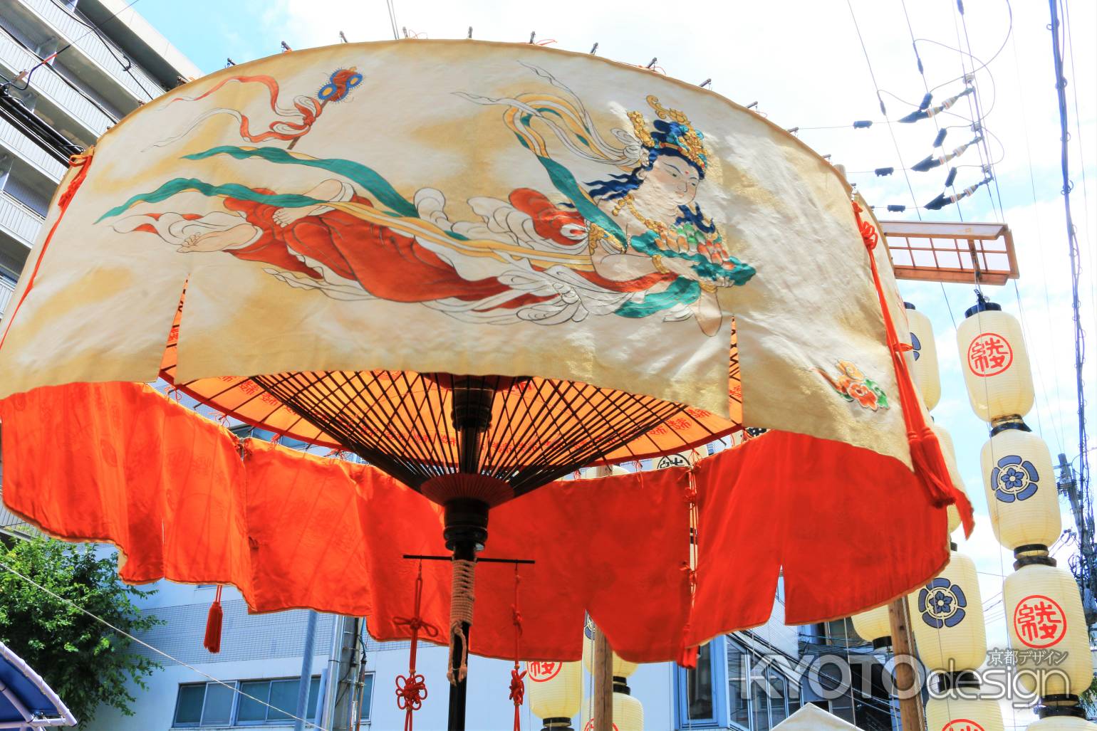 傘の形をした鉾で、現在は綾傘鉾と四条傘鉾がある。細部にわたる細かい装飾がきれい。綾傘の内側、1枚1枚に「綾」の字が見られる。
