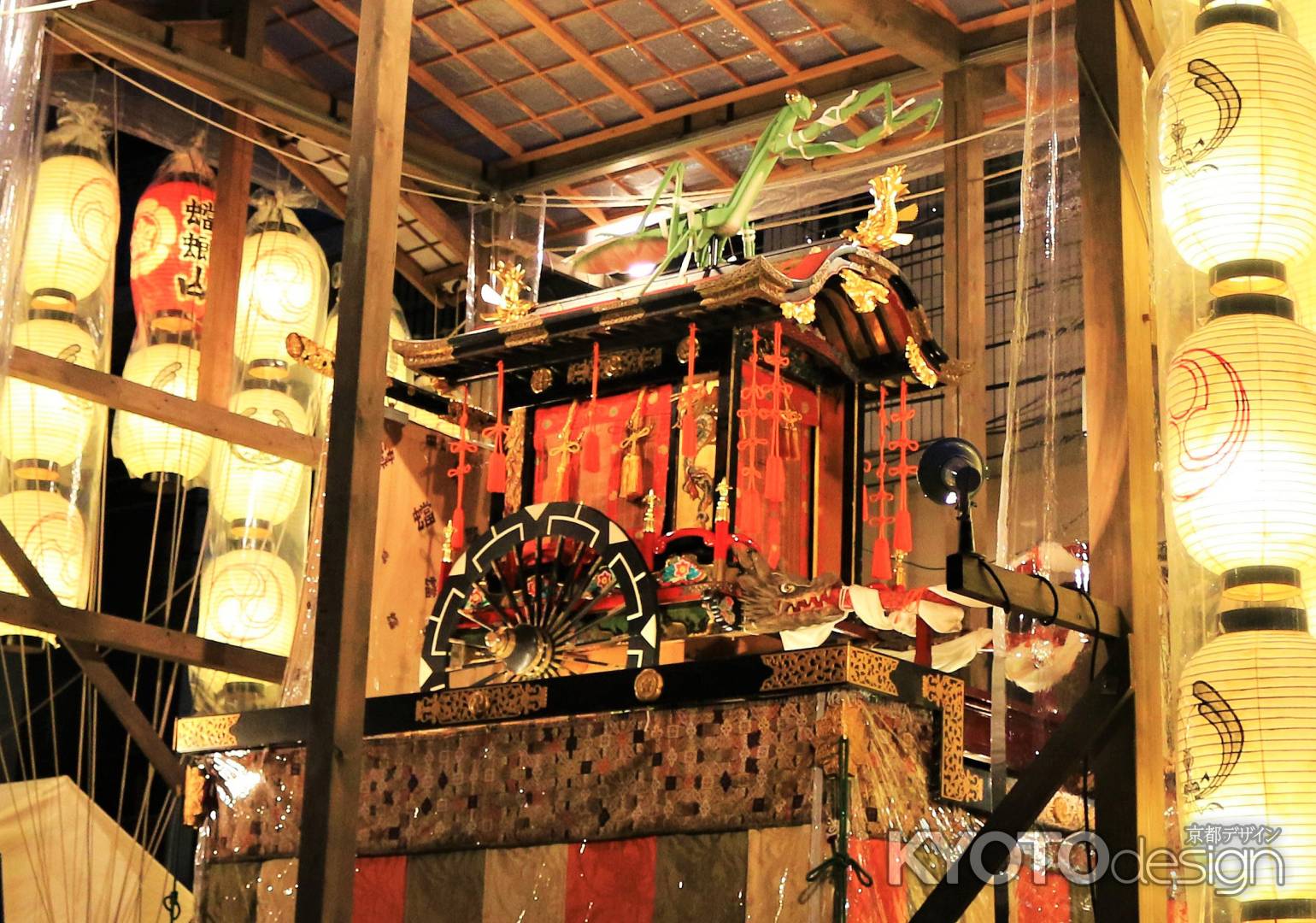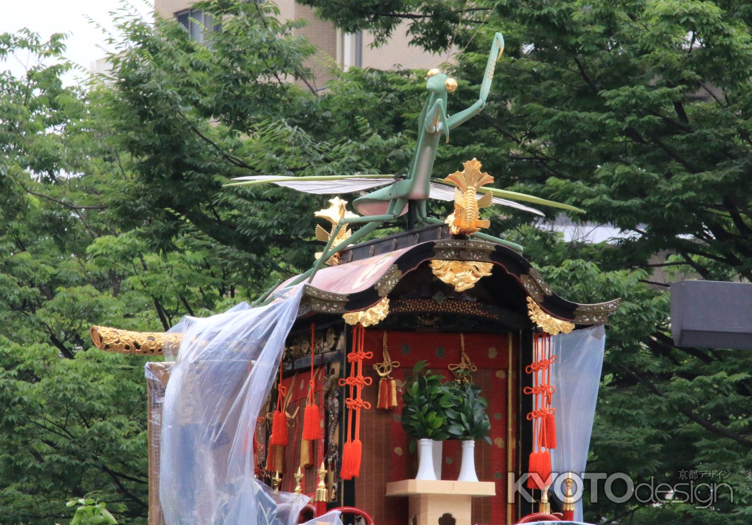 山鉾の中で唯一からくりで動く蟷螂がのっている蟷螂山。蟷螂が羽をひろげるところは、いつも歓声があがります。