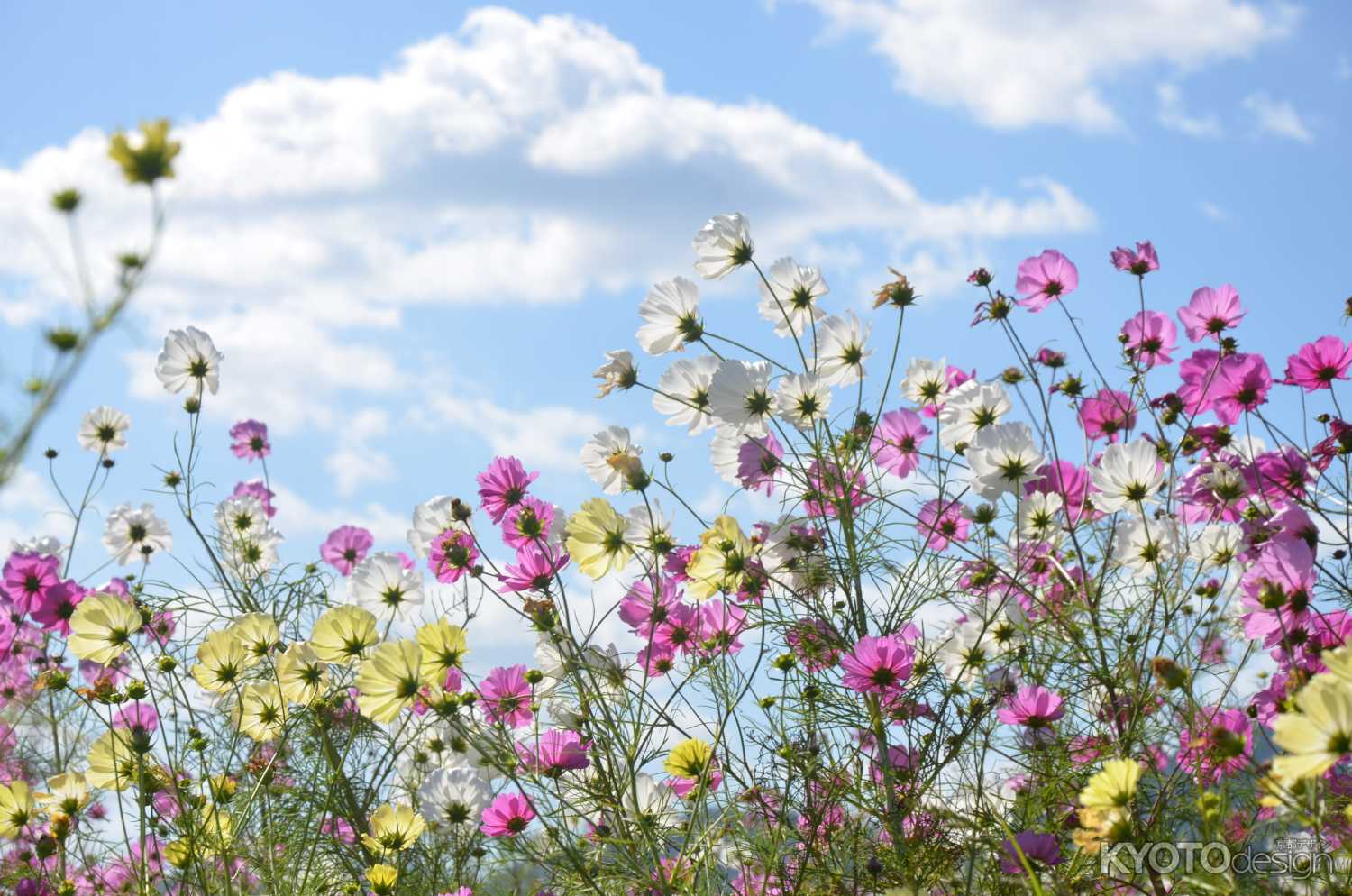 亀岡の『夢コスモス園』では、約4.6haの面積に20品種約800万本のコスモスが咲きます。