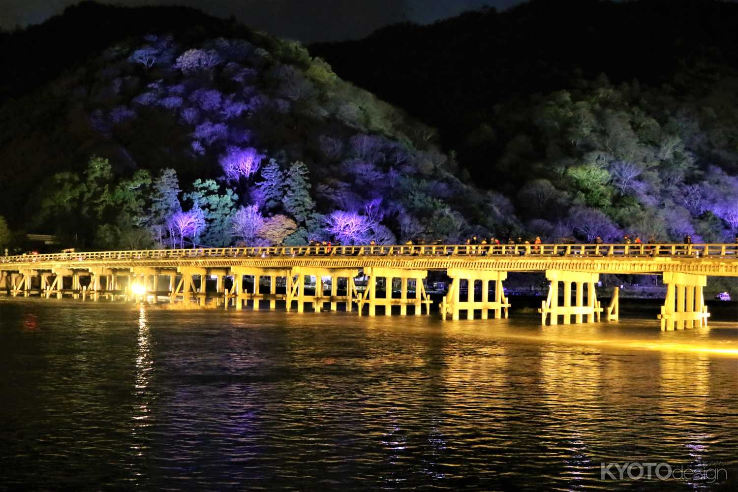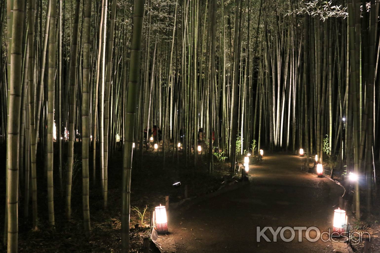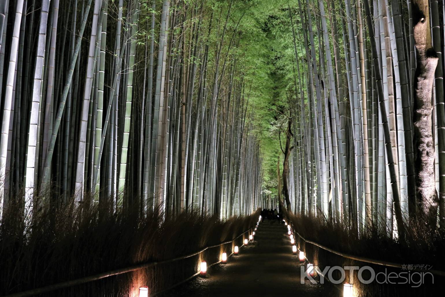 渡月橋や嵯峨野竹林が、よく知られていますが、道沿いだけでなく7か所ほどの寺院や庭園などもライトアップされています。それぞれが、趣のあるライトアップがされており、ゆっくりまわると時間が足りないくらいです。時間は、17時から20時30分までとなっており、その時間を過ぎると沿道のライトアップもほとんど消えるので、ものすごく暗いです。また、嵐電嵐山駅構内には、キモノフォレスタが行われ、幻想的な雰囲気を醸し出しています。構内は、フリーです。