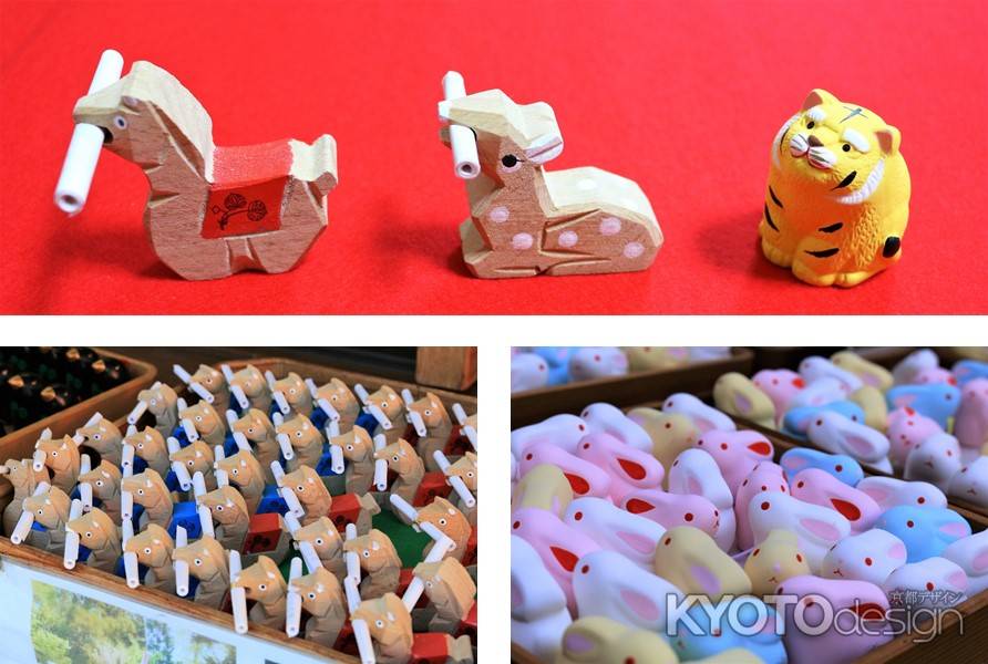 〇大原野神社 良縁、縁結びの神様。春日大社の分社で、鹿は神の使いとされている。神鹿みくじ。木製。