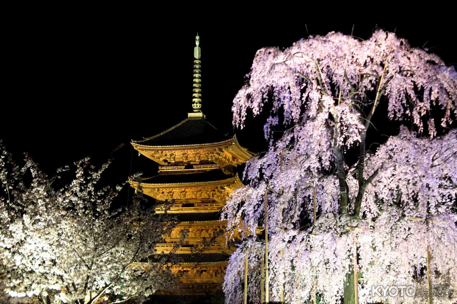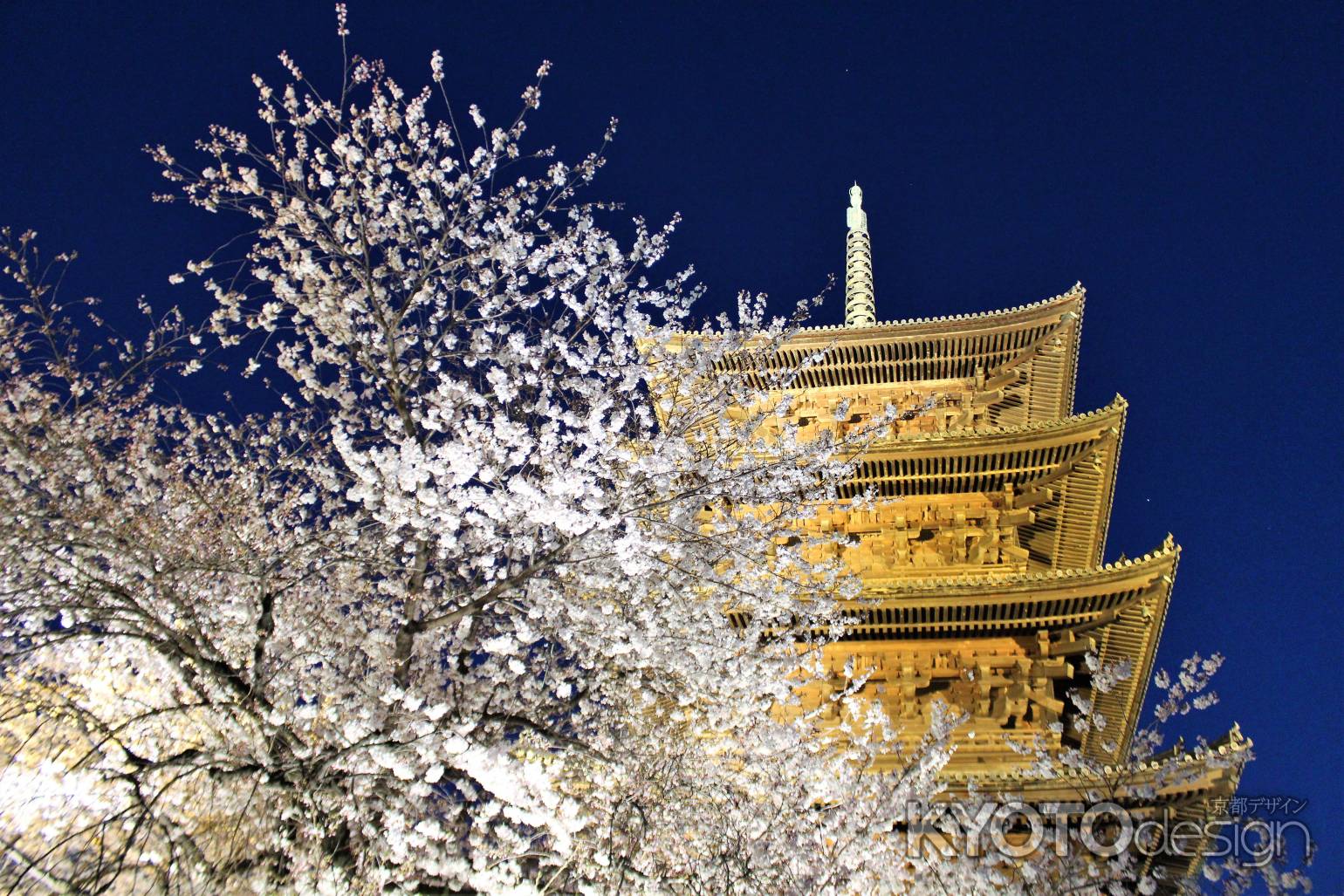 京都のライトアップで清水寺と並んで有名なところ。京都駅にも近く、駐車場も広いので多くの人でにぎわう。五重塔と不二桜がよく写真に撮られるが、それだけではない。広い境内いたるところに、美しさがひそんでいる。ライトアップ期間も長い。
