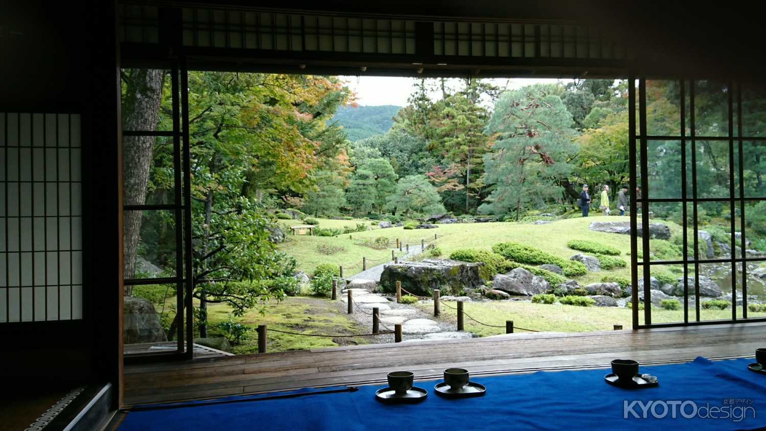しっとりとした趣で、頭をぶつけないように屈みながら敷地に入ると立派な古木の向こうに池泉式の庭園が広がります。