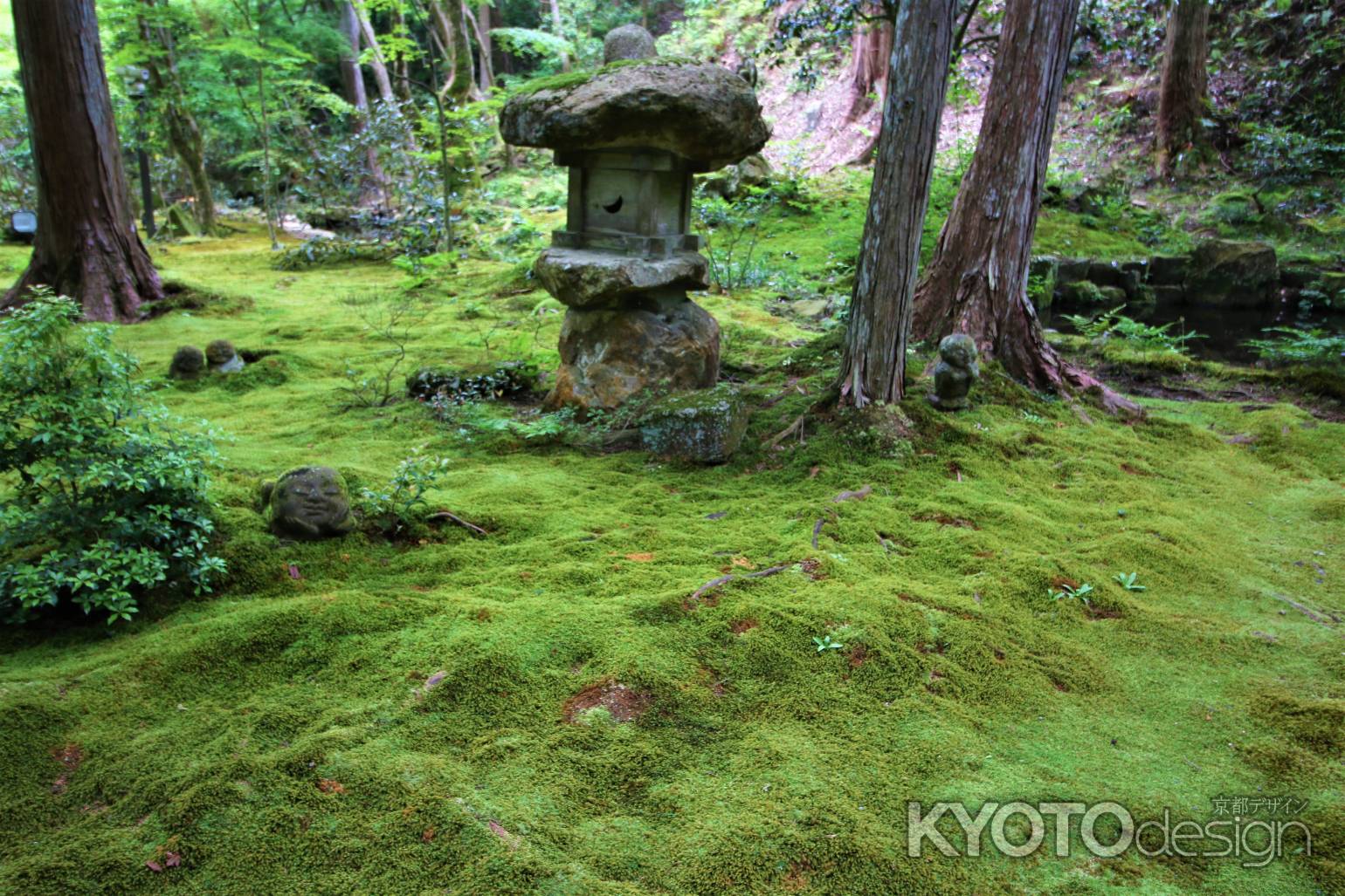 往生極楽院前の苔に覆われたところに、わらべ地蔵の庭があります。彫刻家、杉村孝氏作のわらべ地蔵さんが。その苔むした様子からは意外な感じを受けますが、平成になってからおかれたようです。今では、すっかりお庭になじんでいます。杉村孝氏は、静岡の方なので東海地方のたくさんの寺院にわらべ地蔵さんがおられます。特に、静岡市の寶泰禅寺にはすごく多くのわらべ地蔵さんが、しかもユニークなお地蔵さんがおられます。京都では、南禅寺塔頭の牧護庵にも置かれていますが、門前のわらべ地蔵以外は、門内のお庭の中にあり拝観することはできません。