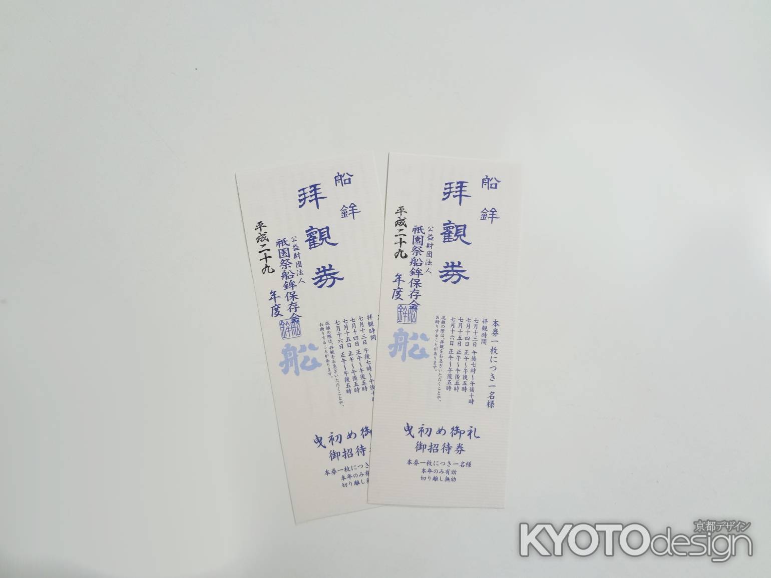 また曳き初めの最後にはなんと拝観券をもらうことができました!宵山の期間に是非行ってみたいと思います。