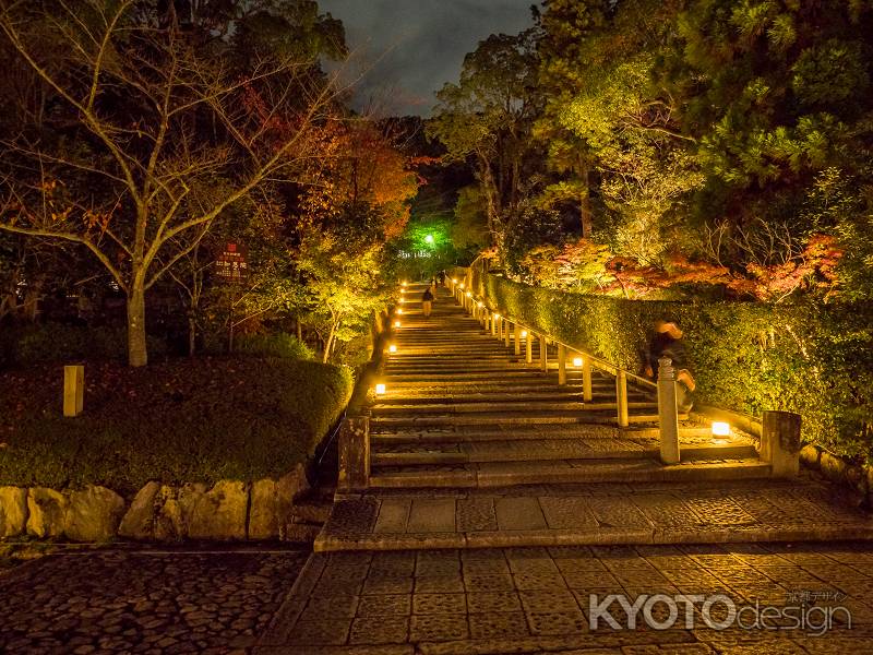 ライトアップイベント入り口から境内へ向かう階段は男坂と女坂の2つの階段があります。綺麗にライトアップされている女坂の階段がおすすめです。(階段の傾斜が女坂のほうが緩やかでもあります。)ライトアップされた紅葉を眺めながらゆっくり階段をのぼるだけで日常を忘れてふんわりした気分になることができますよ。