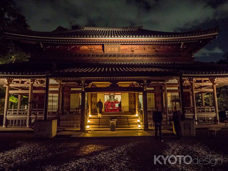 阿弥陀如来立像をお祀りする「宝佛殿」もライトアップされています。ここではお坊さんの法話を聞けるイベントが開催されています。(イベント開催日時は公式HP参照) 夜の幻想的な空間の中お坊さんのお話を聞けるというのもなかなかできない経験ですよね。