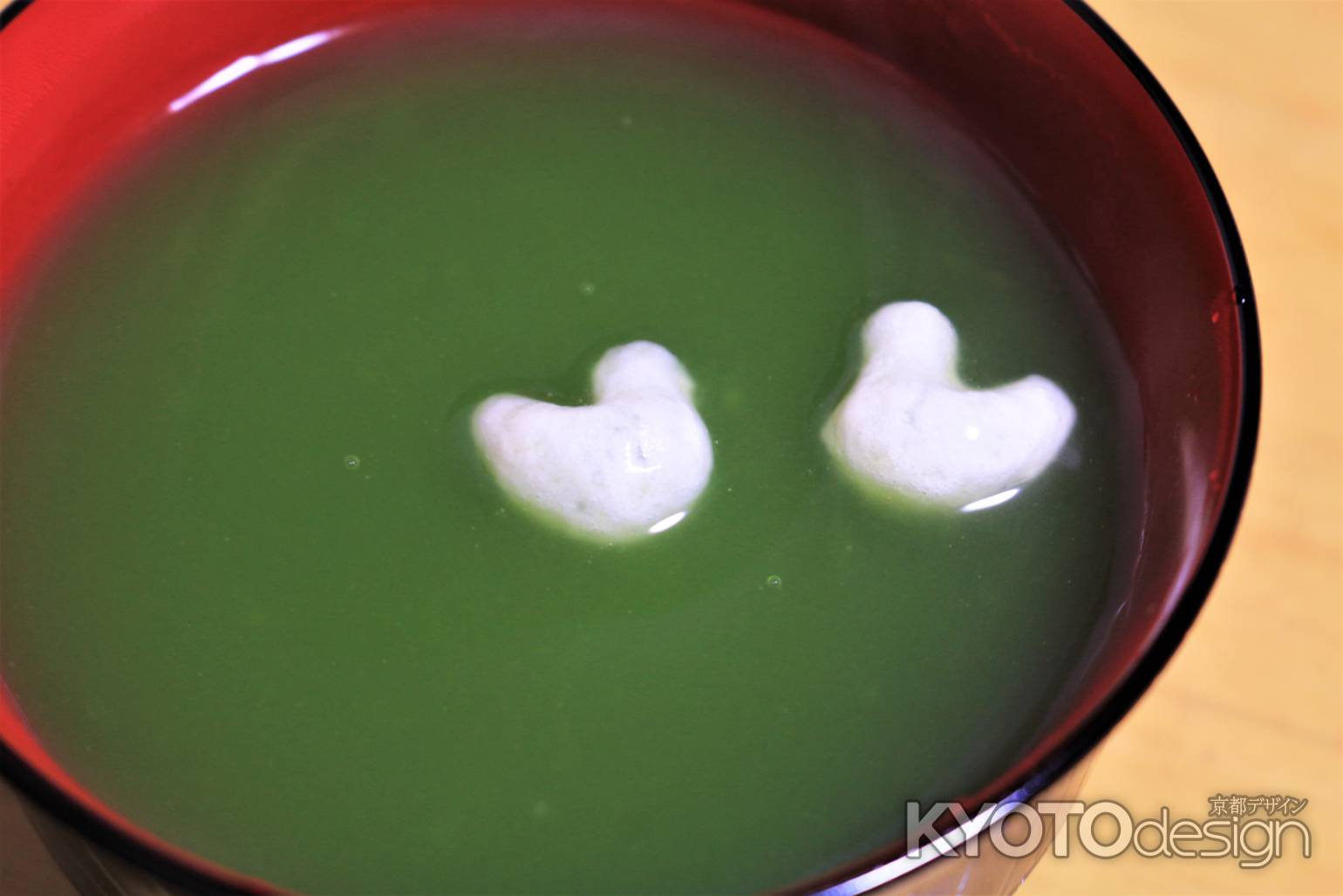 老舗和菓子店、長久堂さんの鳰の浮巣という葛湯です。葛湯は、たくさんの老舗から販売されています、特に鍵善良房さんのは美味しく思います。この長久堂さんの葛湯は、なんとお湯をそそいでいくと、2羽の鳰(水鳥)が浮かんでくるのです。思わず、笑顔になってしまいます、しかも2羽のつがいですからね。お店は、北山と河原町、京都駅専門店街にもあります。写真は、抹茶味のものです。