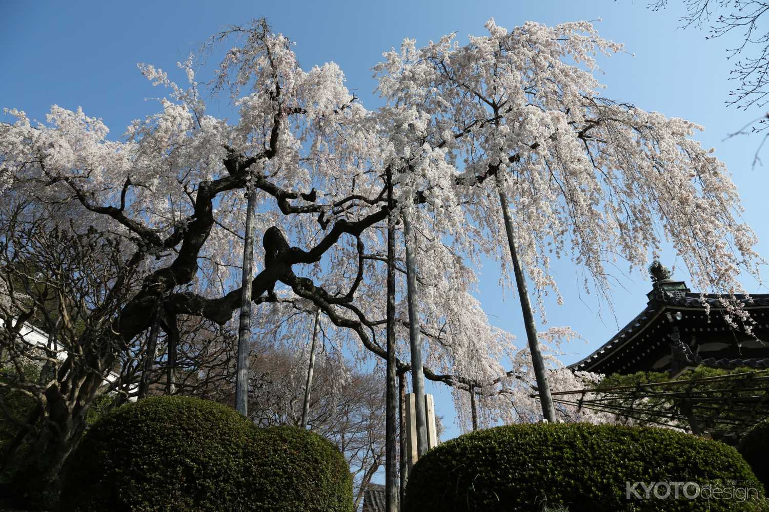 桂昌院がお手植えしたと言われるしだれ桜は樹齢300年に及ぶ名木です。