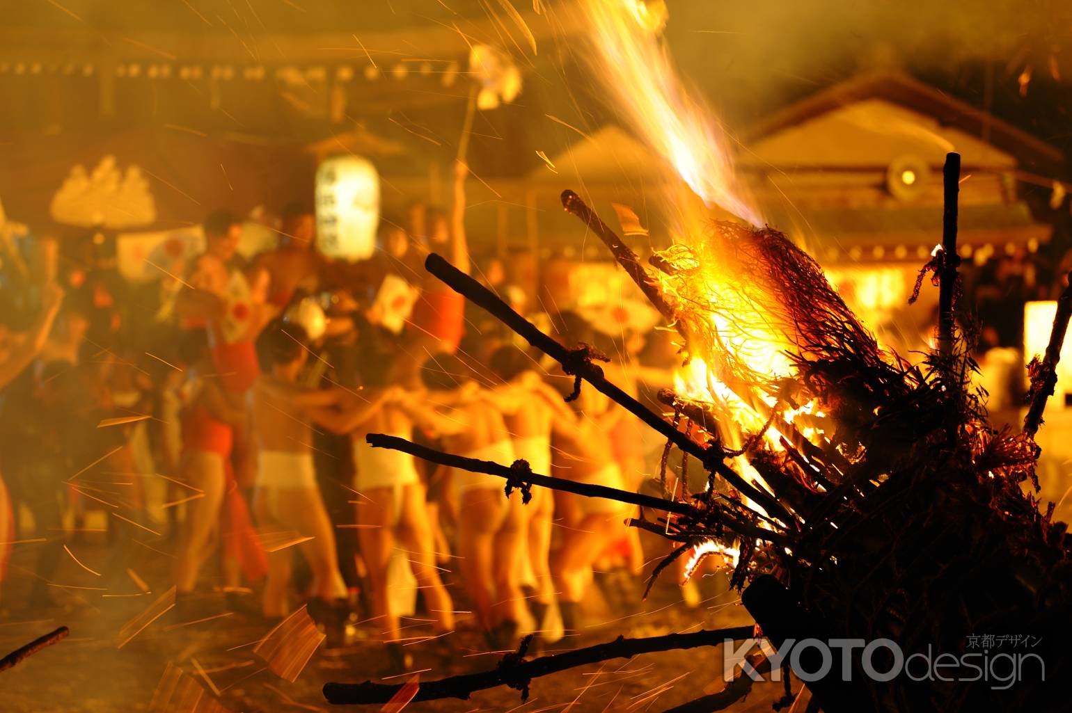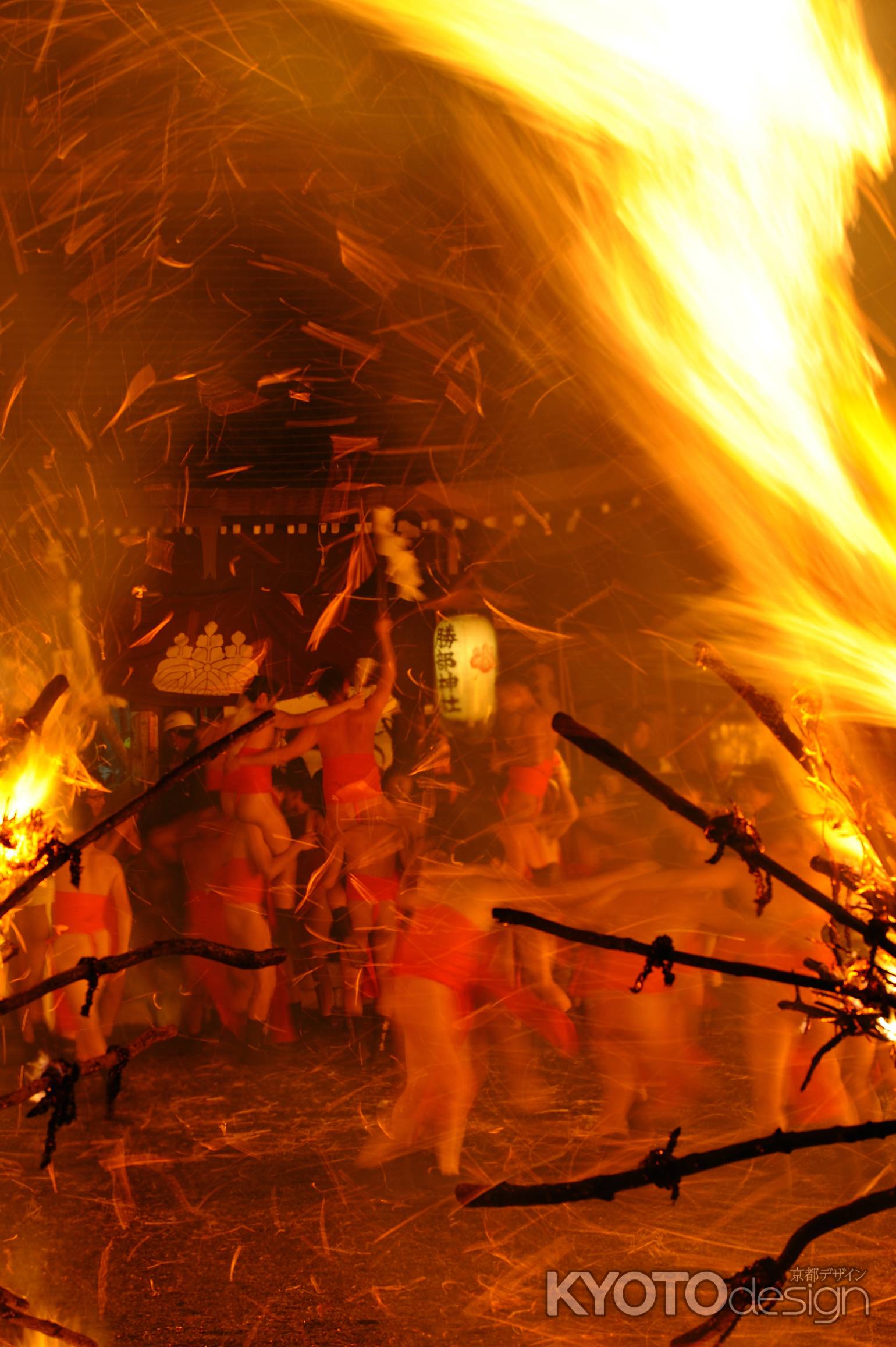 小さな境内に大きな松明が12基\(◎o◎)/その火の勢いは想像を絶する