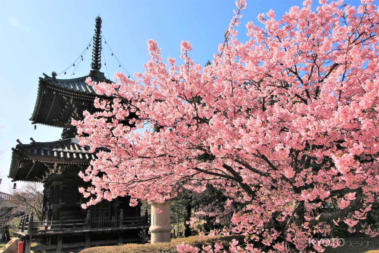 清凉寺は、この桜の少し前に紅白の梅がきれいに咲きます。梅が終わろうとするころ、この河津桜が咲きはじめます。嵐山法輪寺にも、河津桜があります。