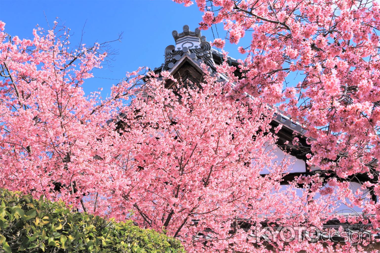 出町柳の長徳寺で、おかめ桜という鮮やかなピンク色の桜が咲きはじめます。今では、とてもよく知られる場所になりました。